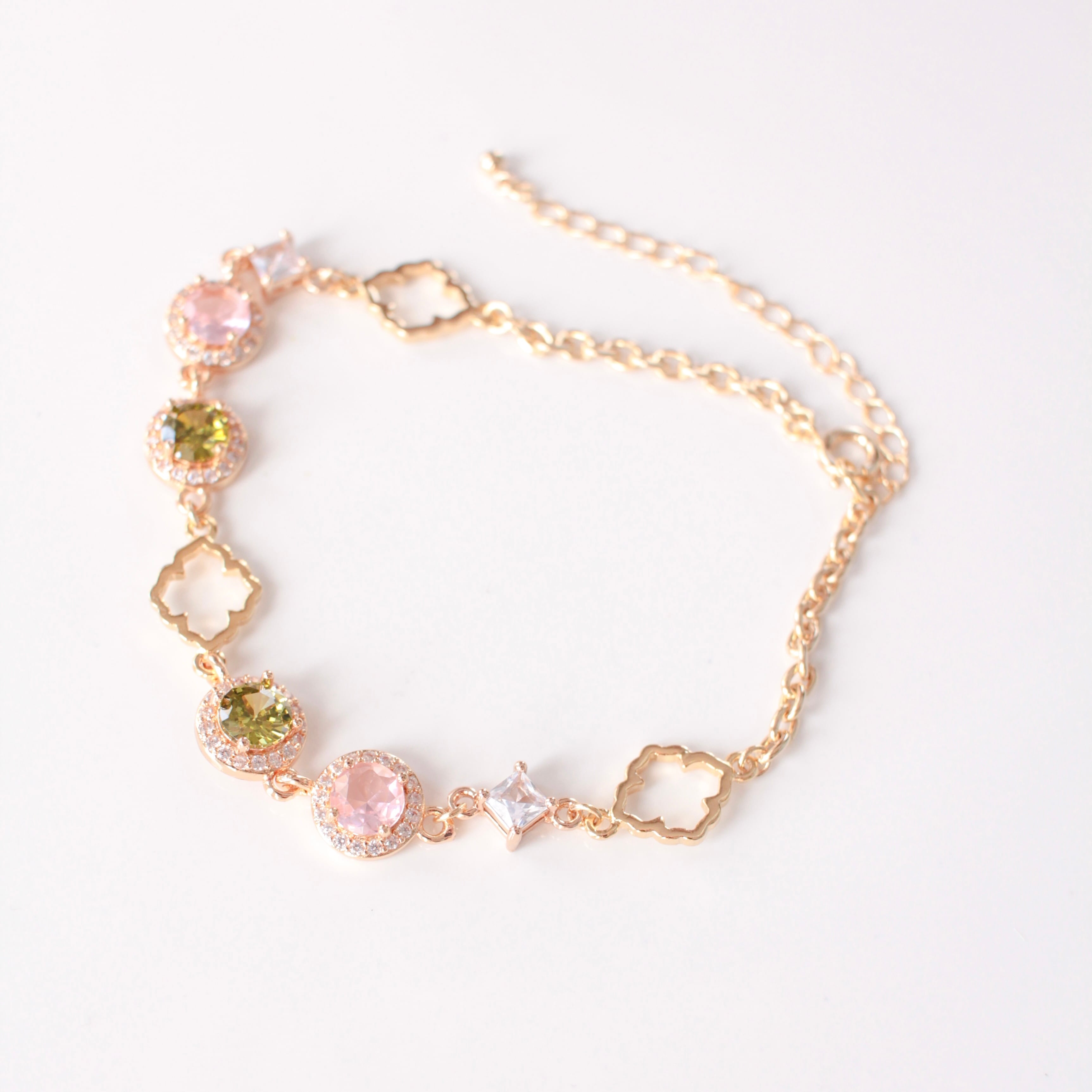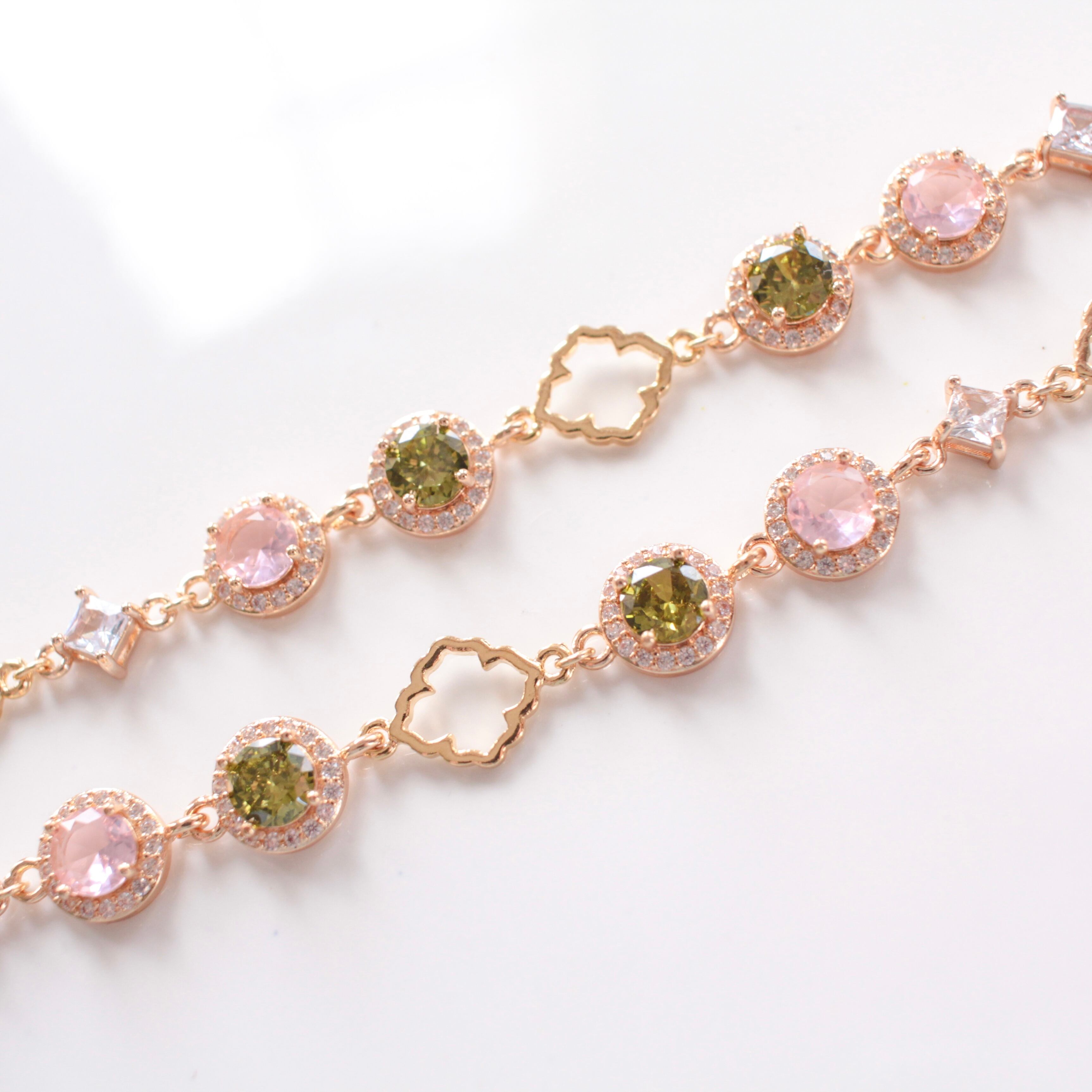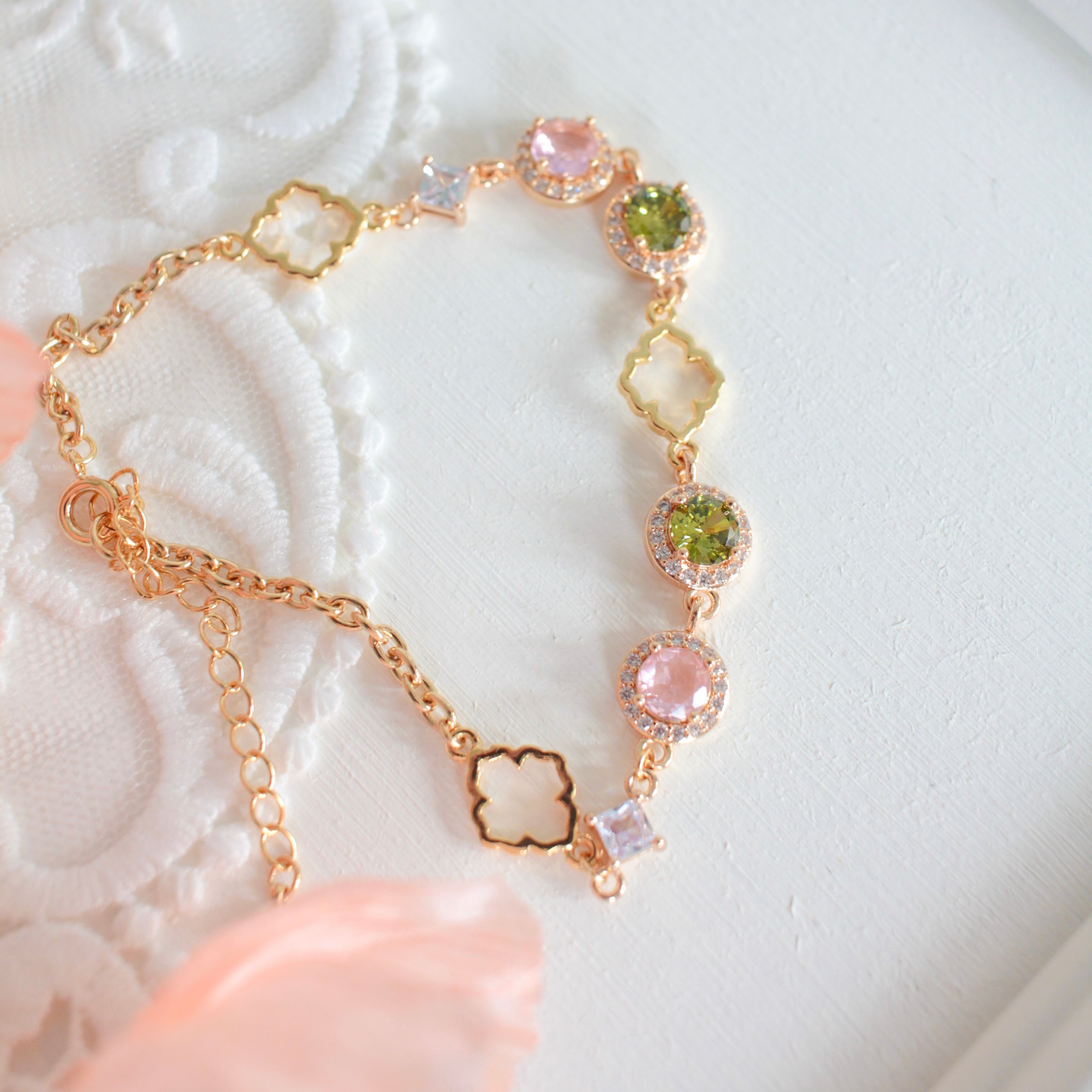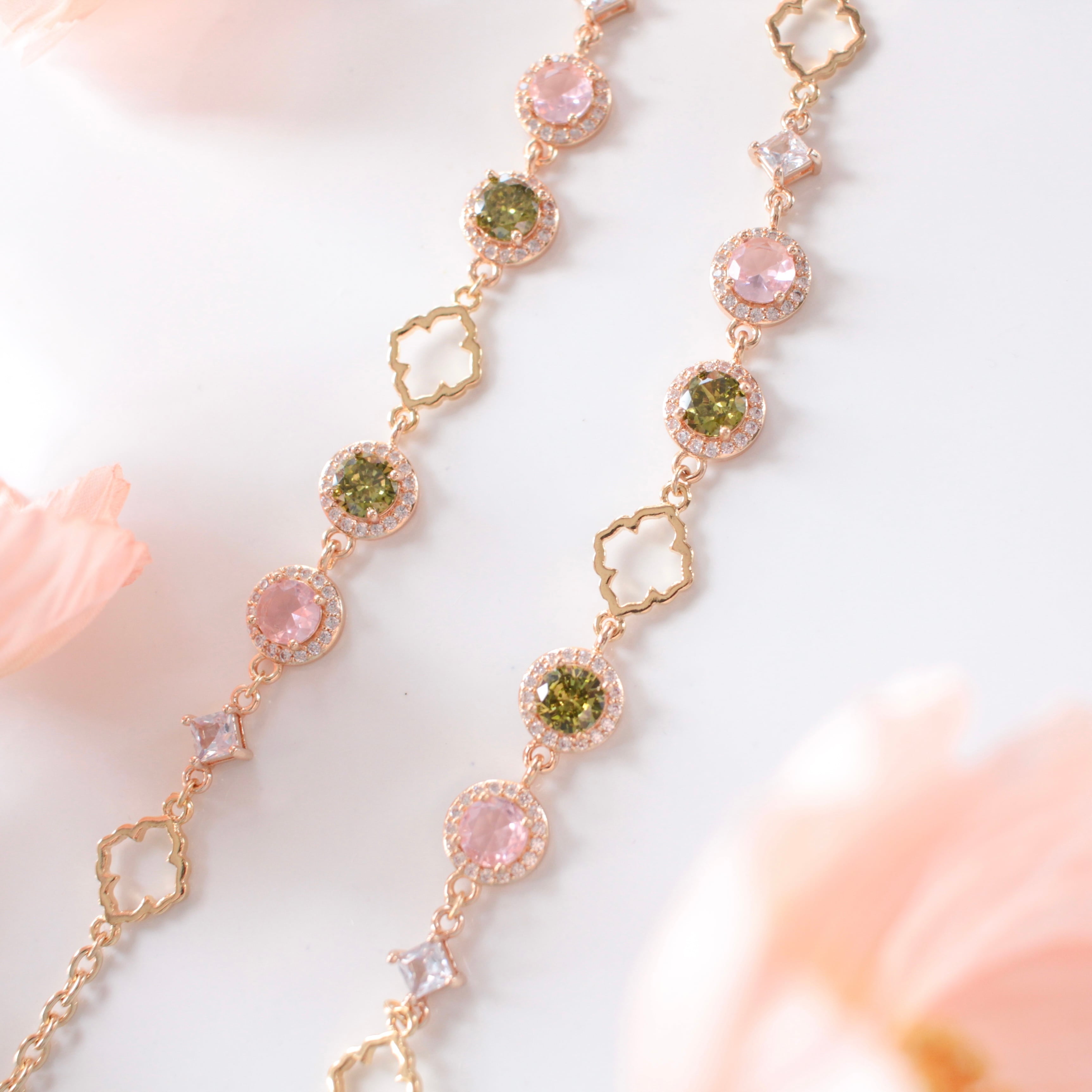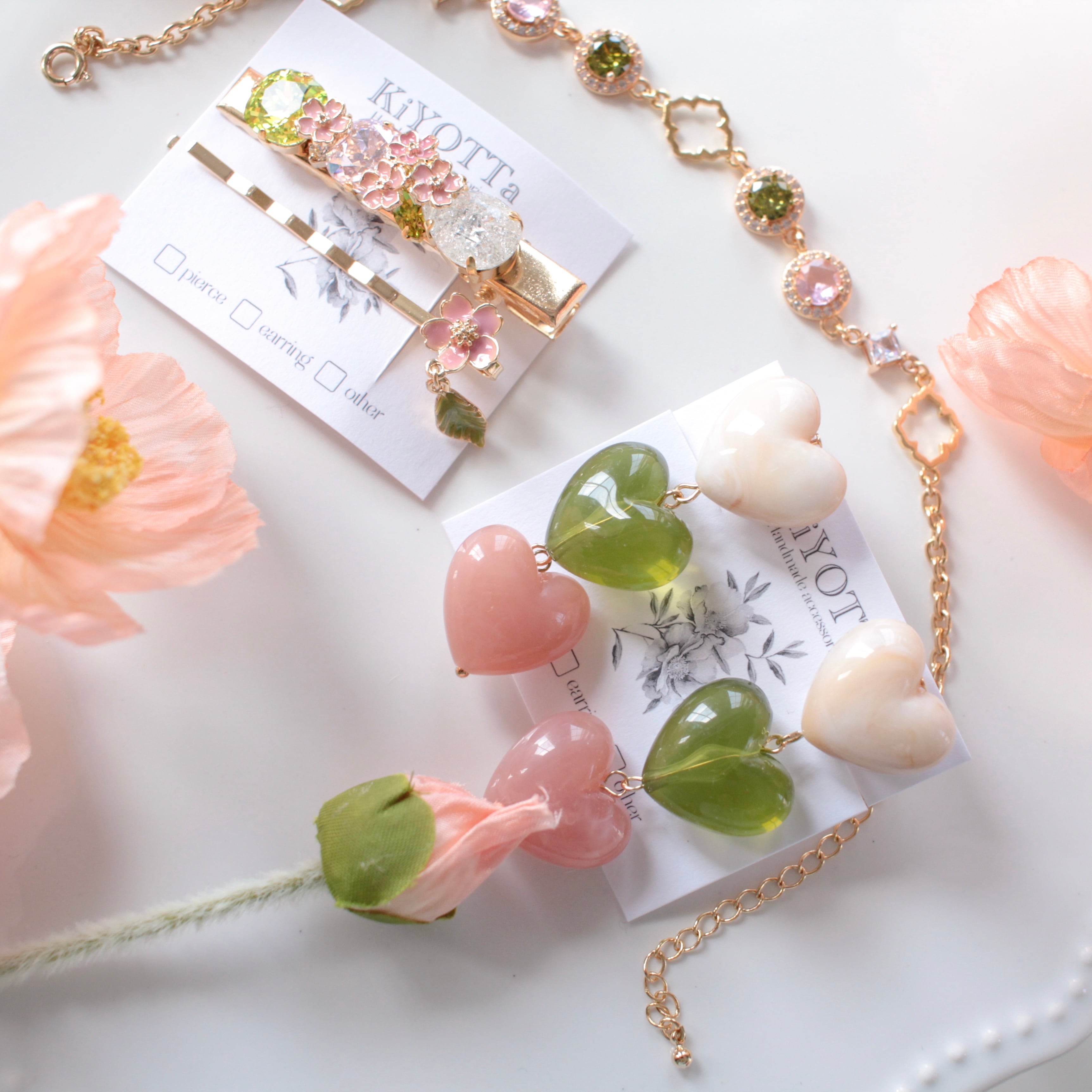 桜餅のカラーをイメージした春らしいキラキラで可愛い華奢なブレスレットです。