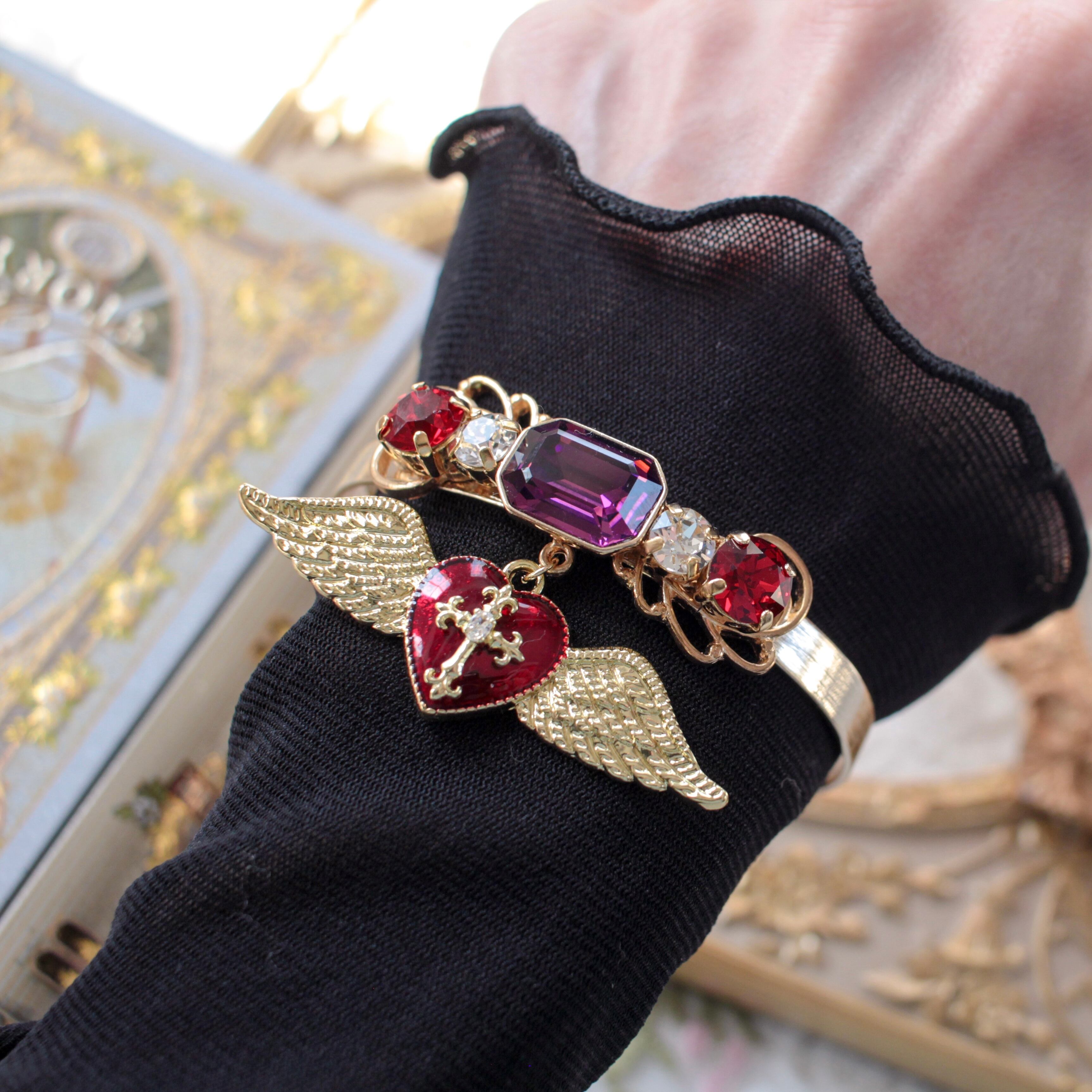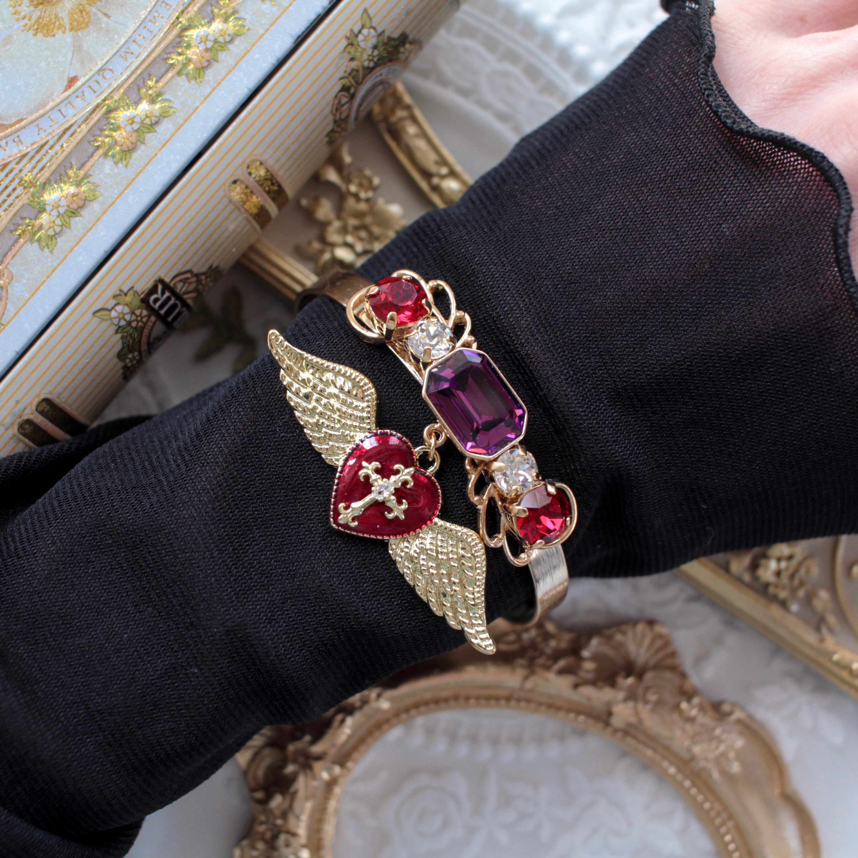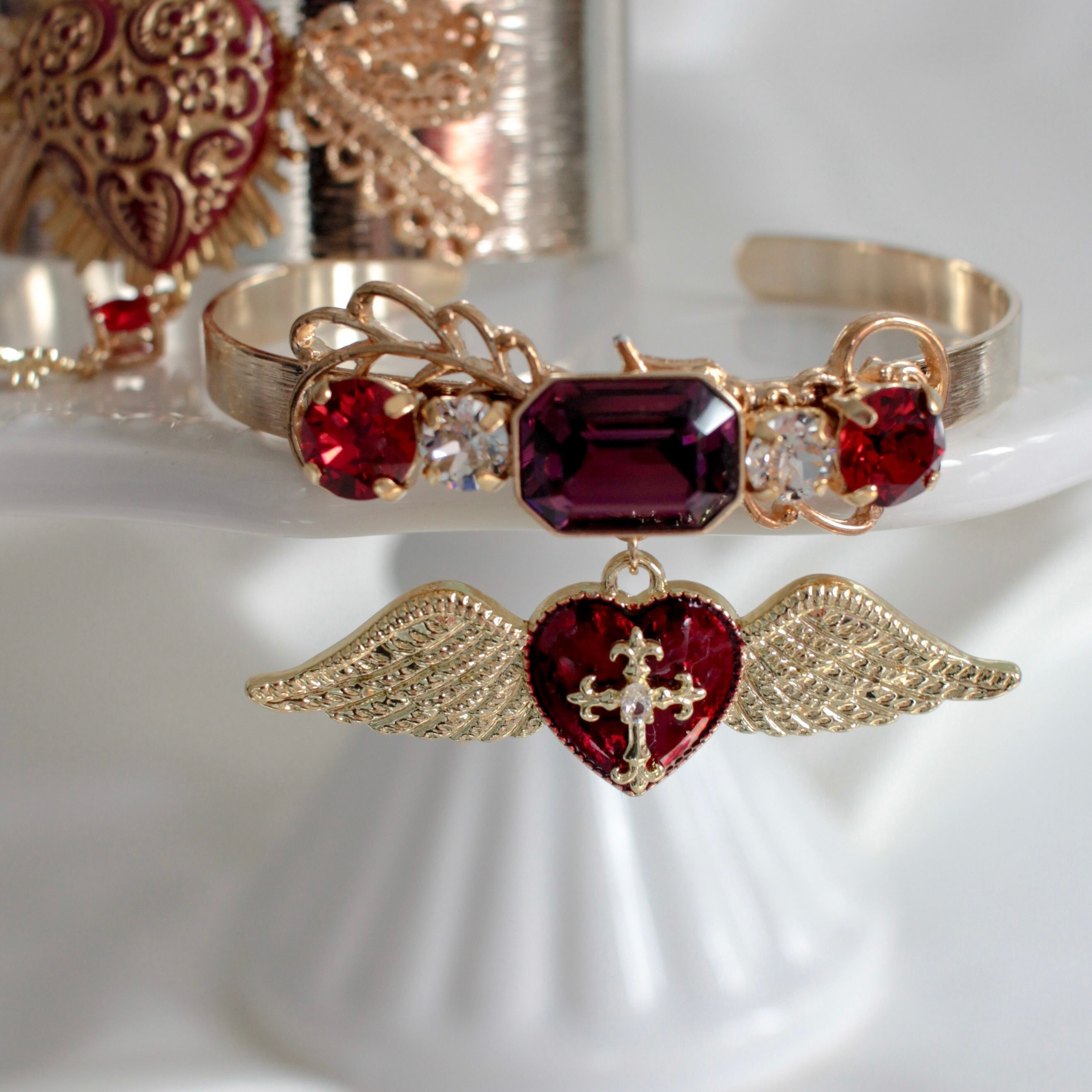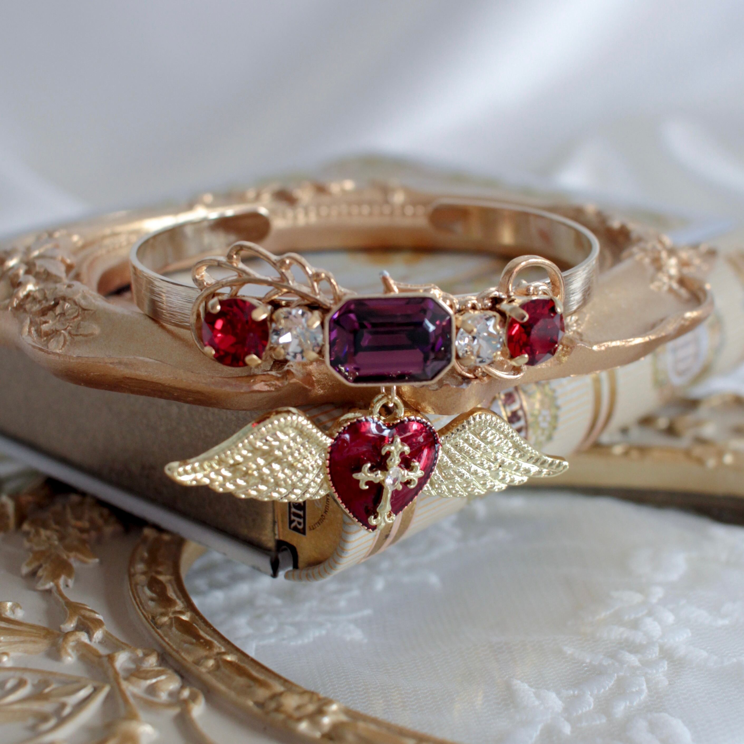 真ん中の大きなヴィンテージスワロフスキーが荘厳な輝きを魅せる下に、天使のハートは十字架。