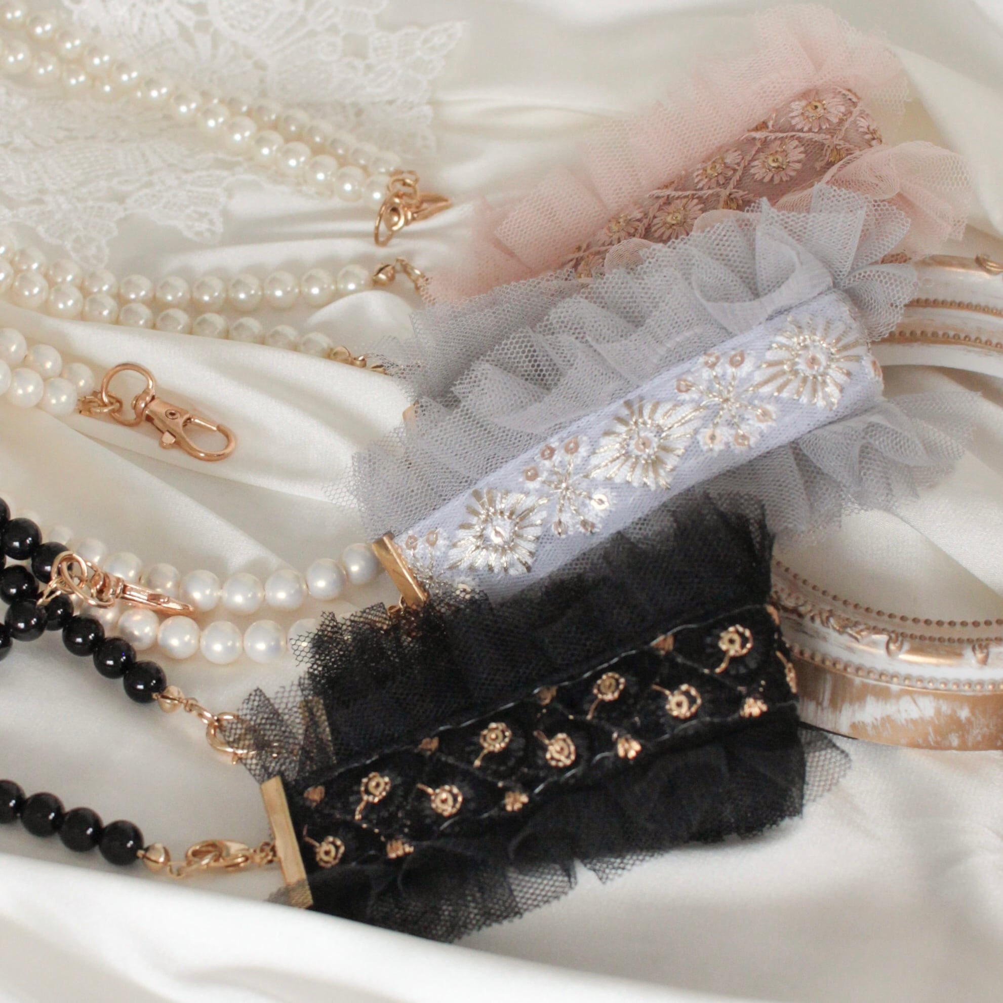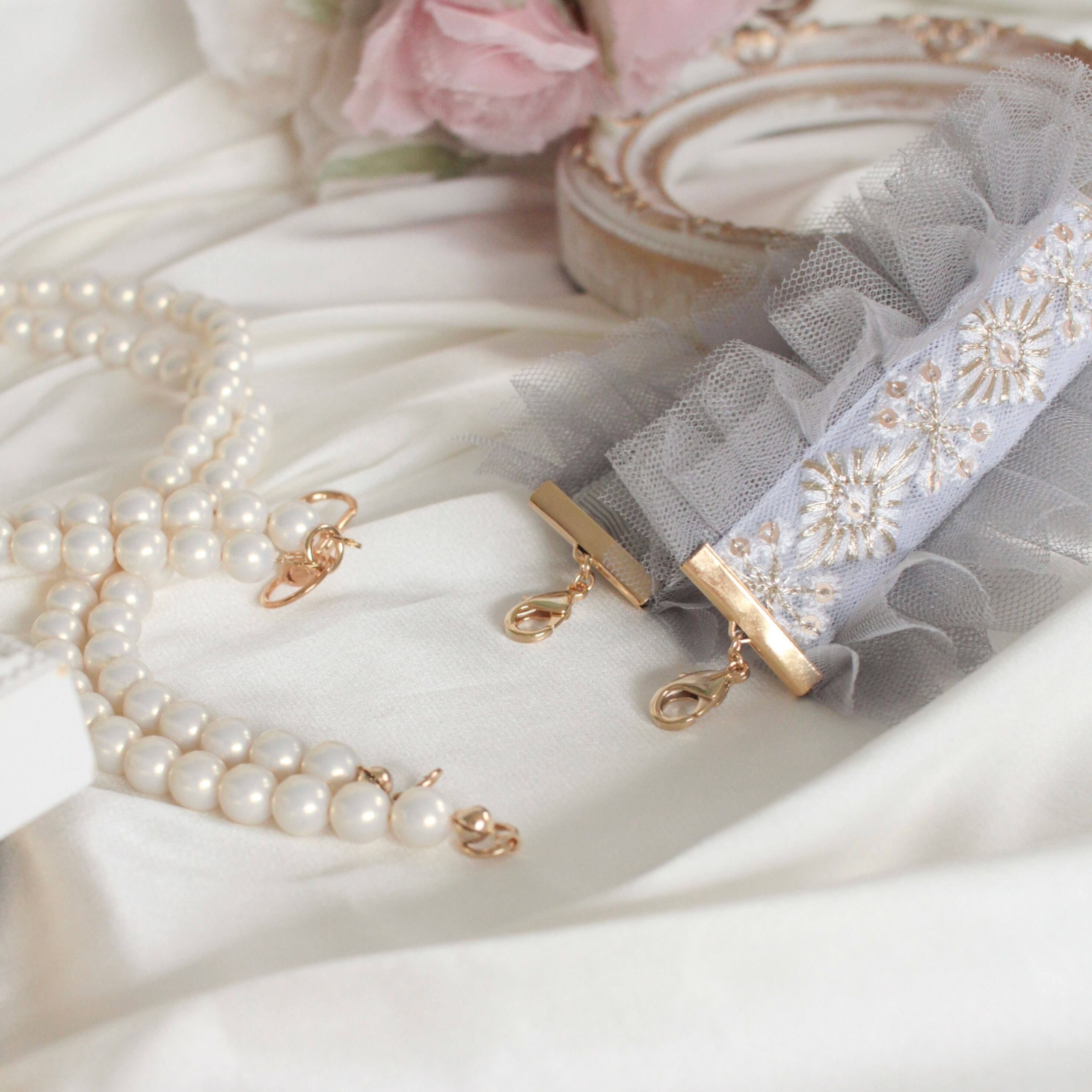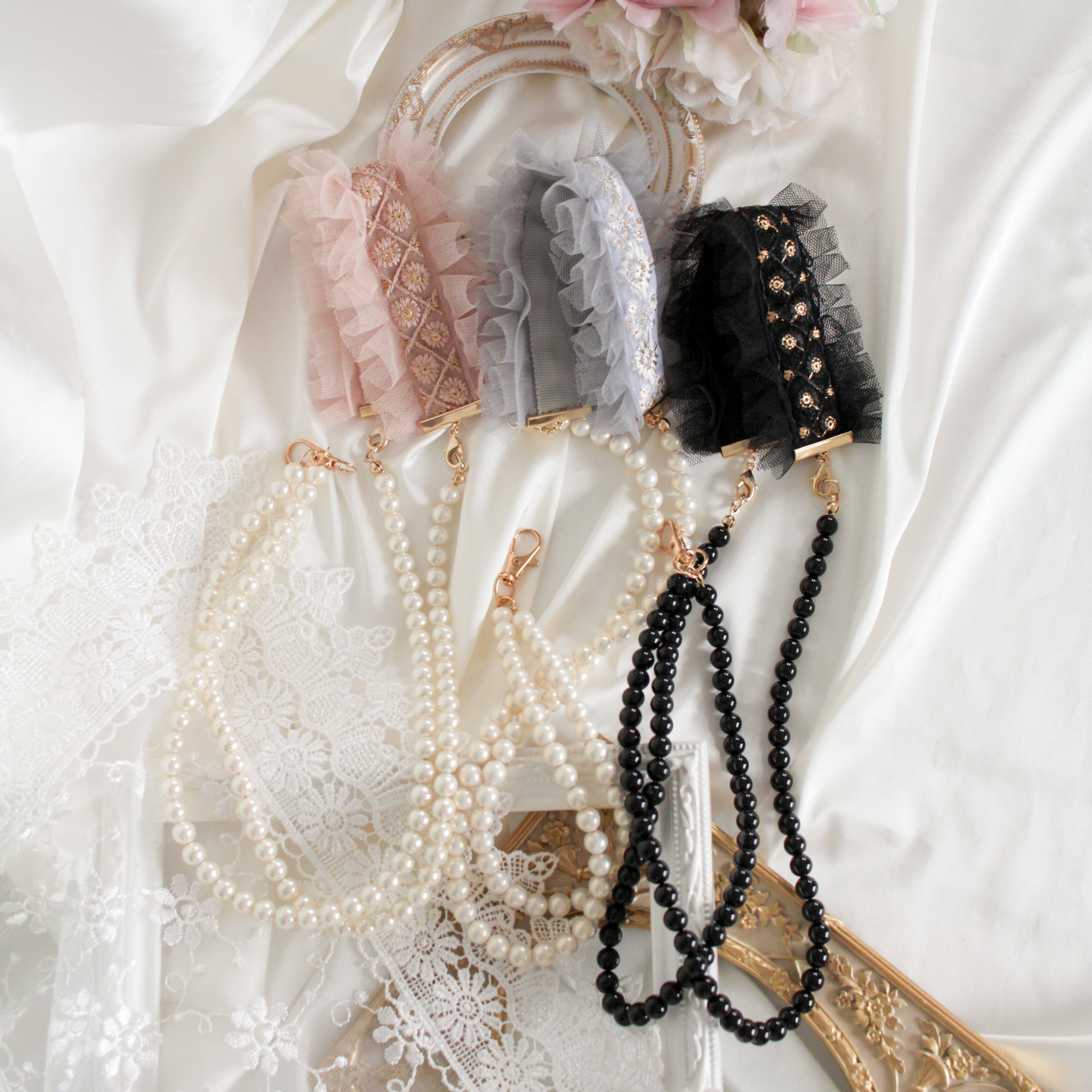 デザフェス後夜祭✴︎インド刺繍×パール 2way ふわふわスマホストラップ 3カラー(グレーのみ2パターン)