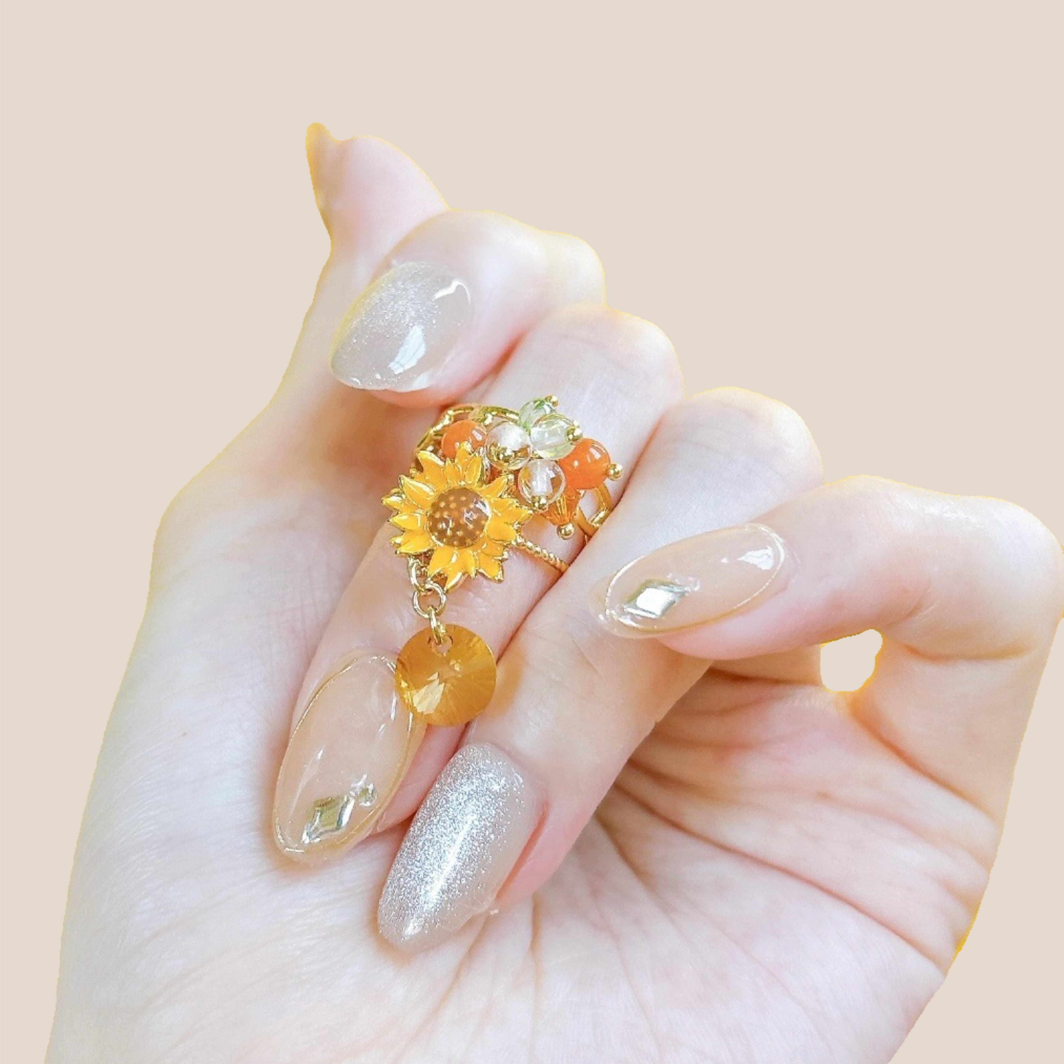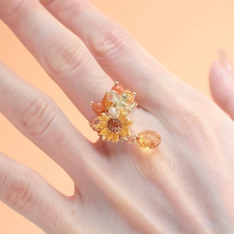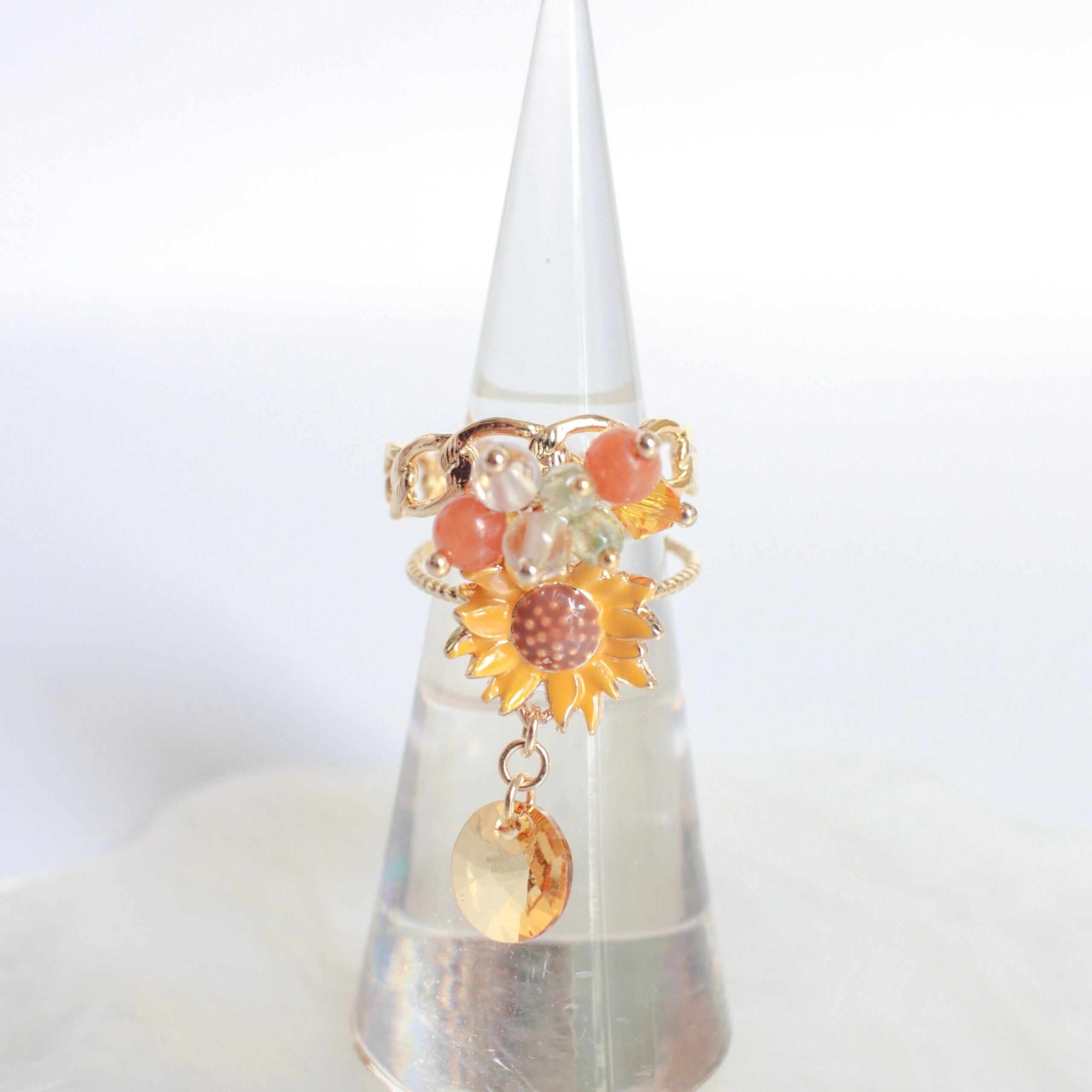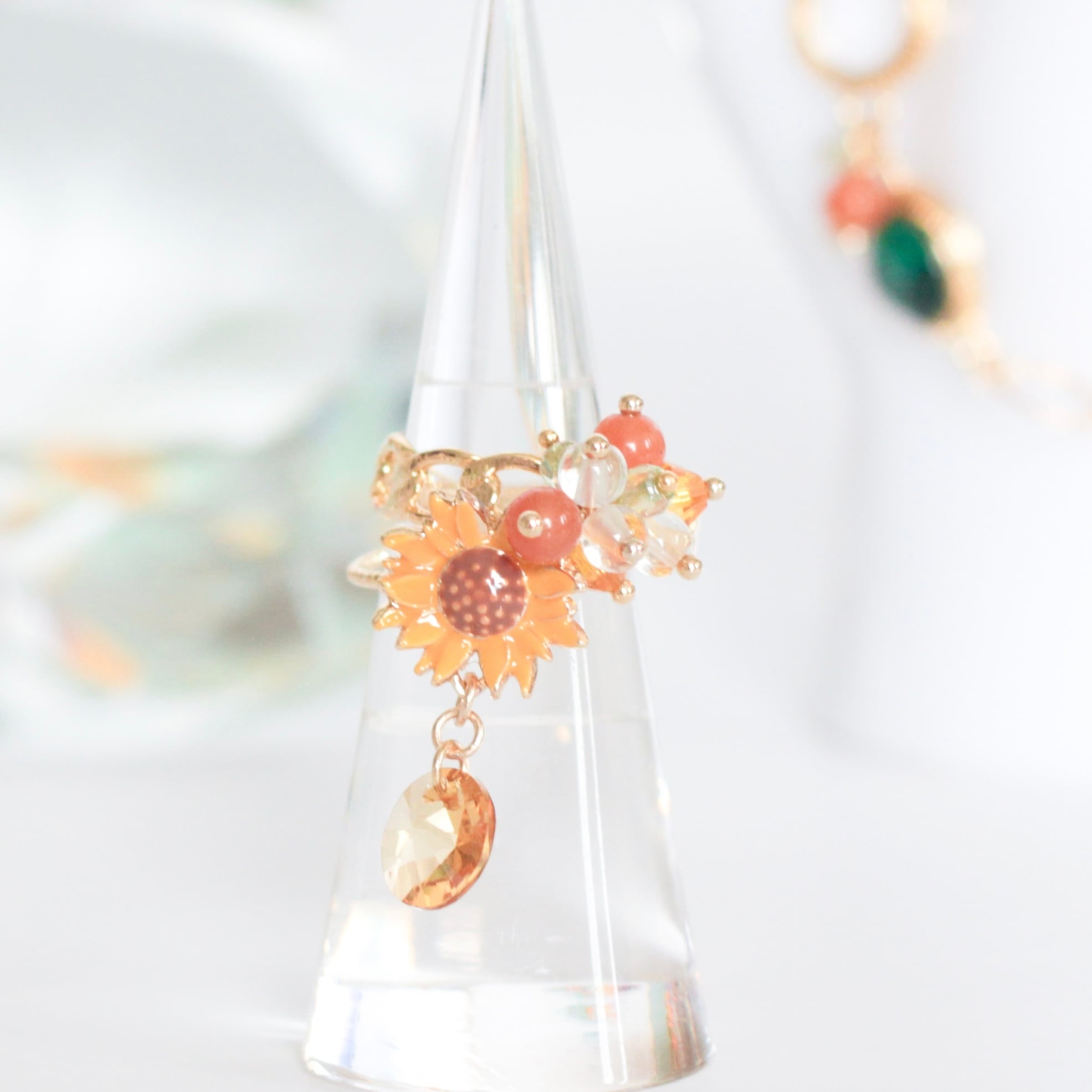 新作*絵画シリーズ 『ゴッホ:ひまわり』 リング2種セット キワクリスタル カーネリアン スワロフスキー