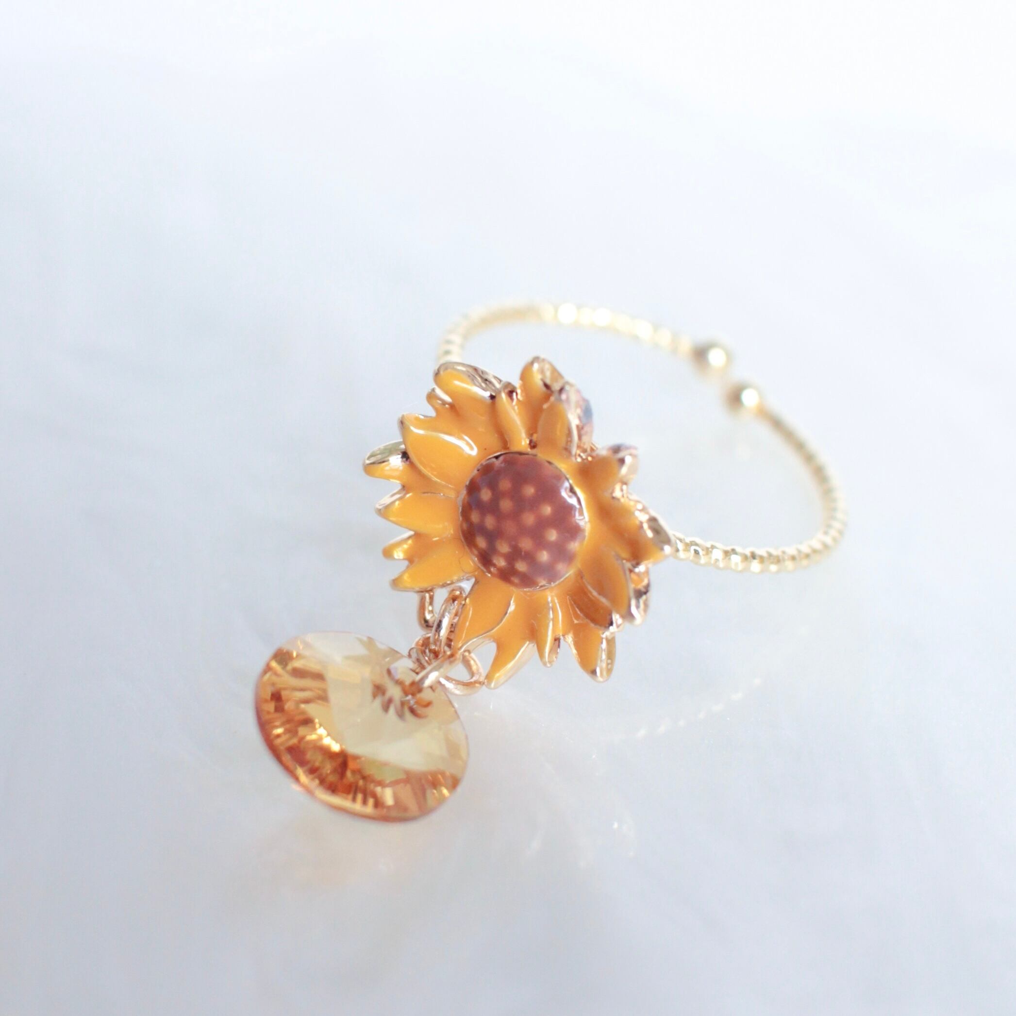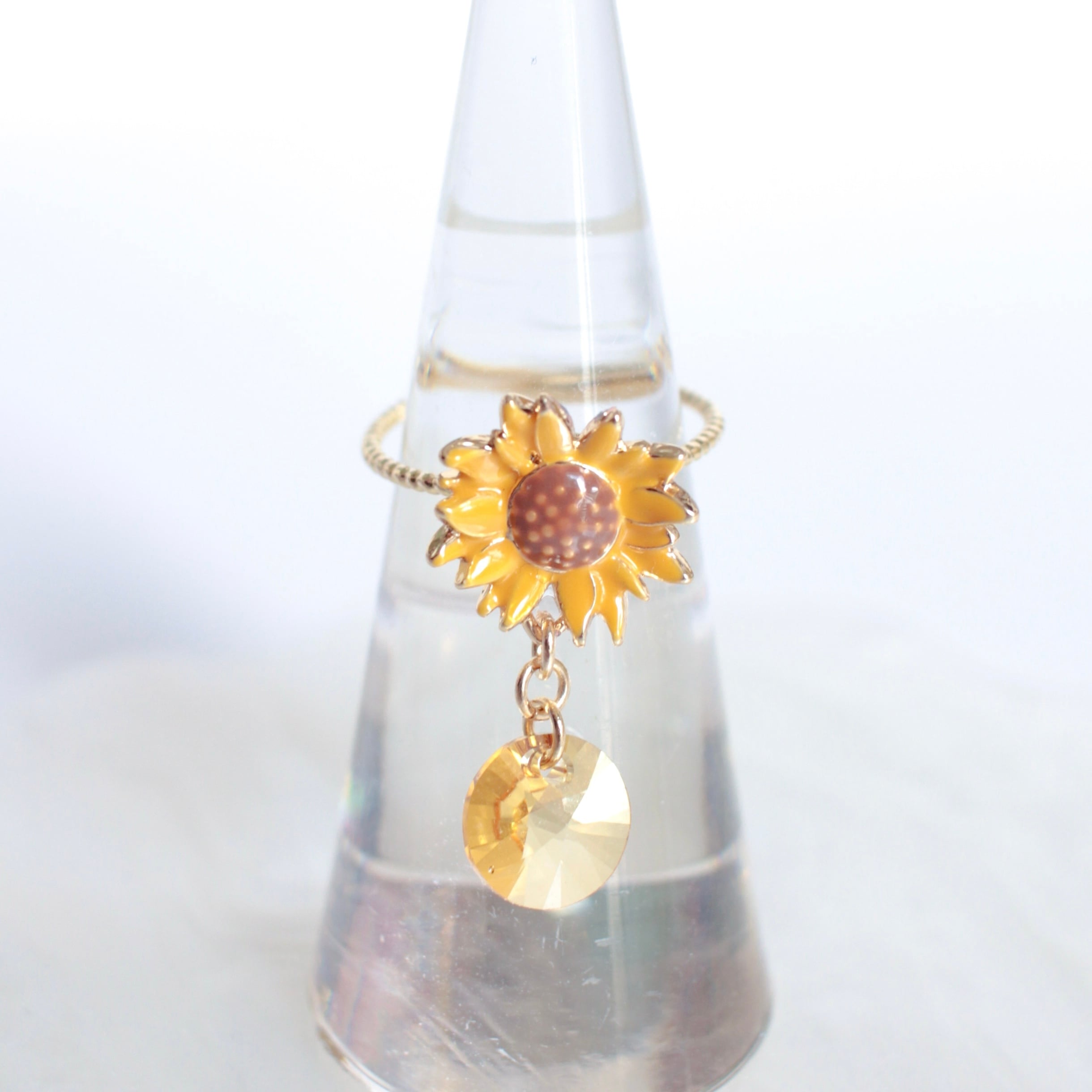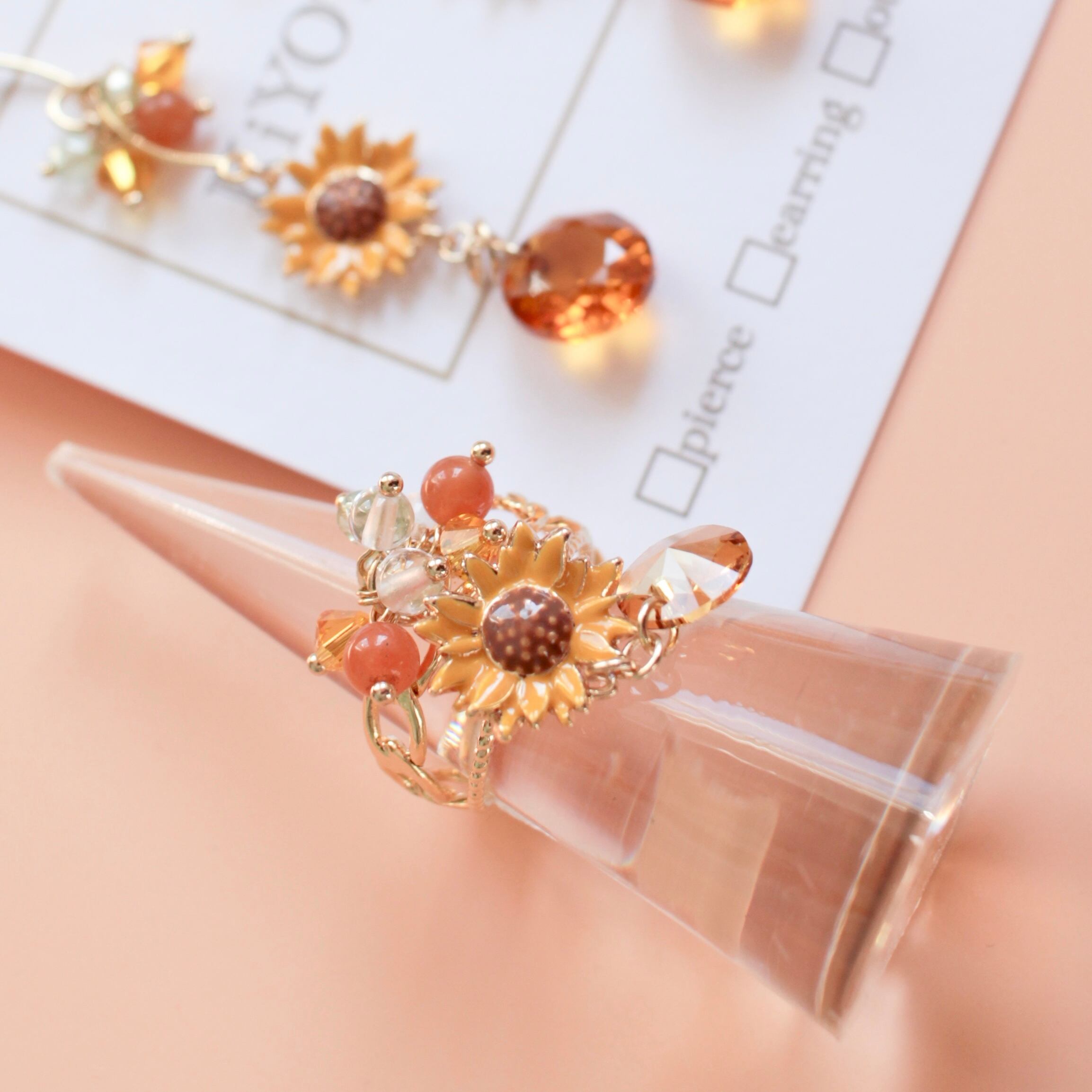 新作*絵画シリーズ 『ゴッホ:ひまわり』 リング2種セット キワクリスタル カーネリアン スワロフスキー