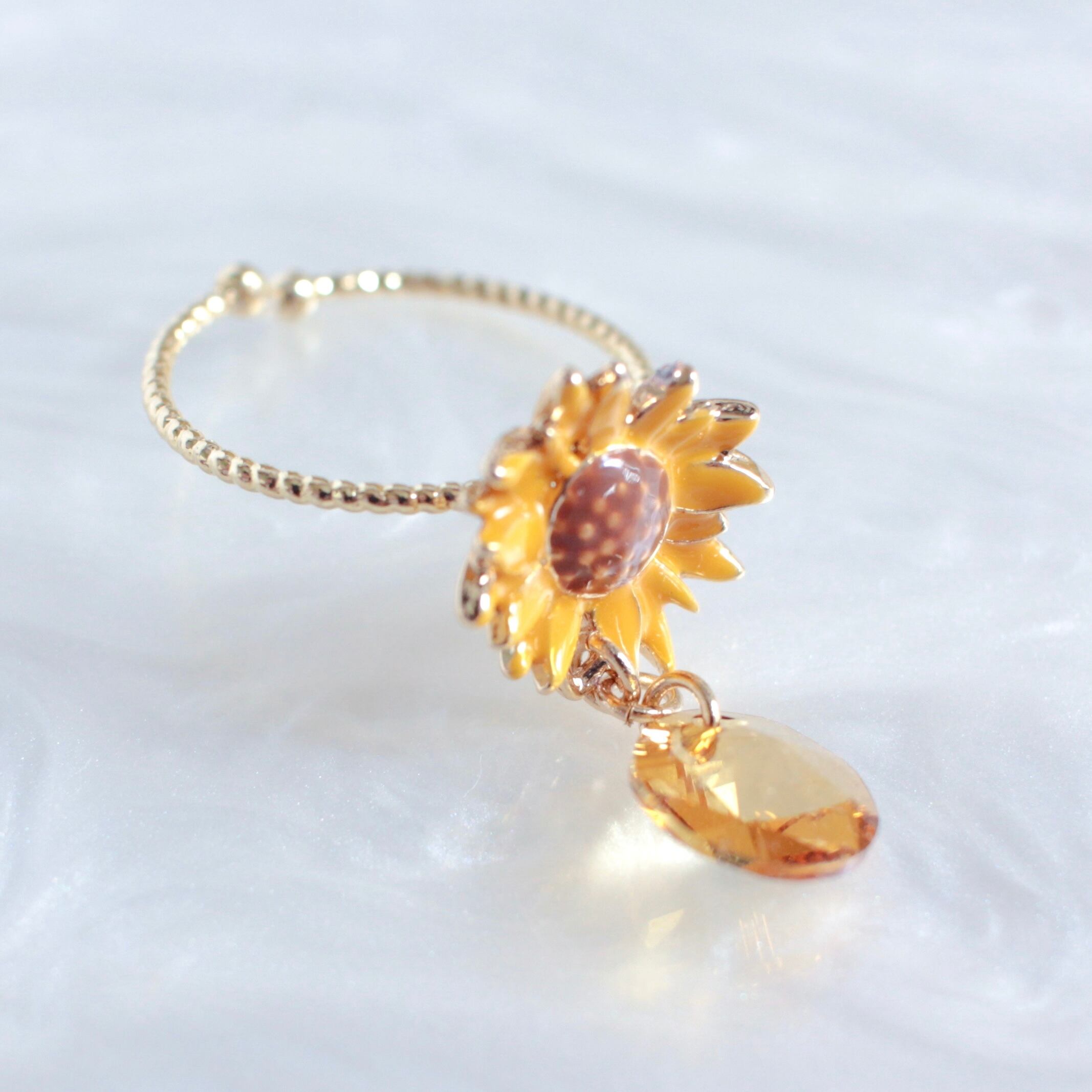 ひまわりのチャームの下で輝くのはキワクリスタルのトパーズ。
