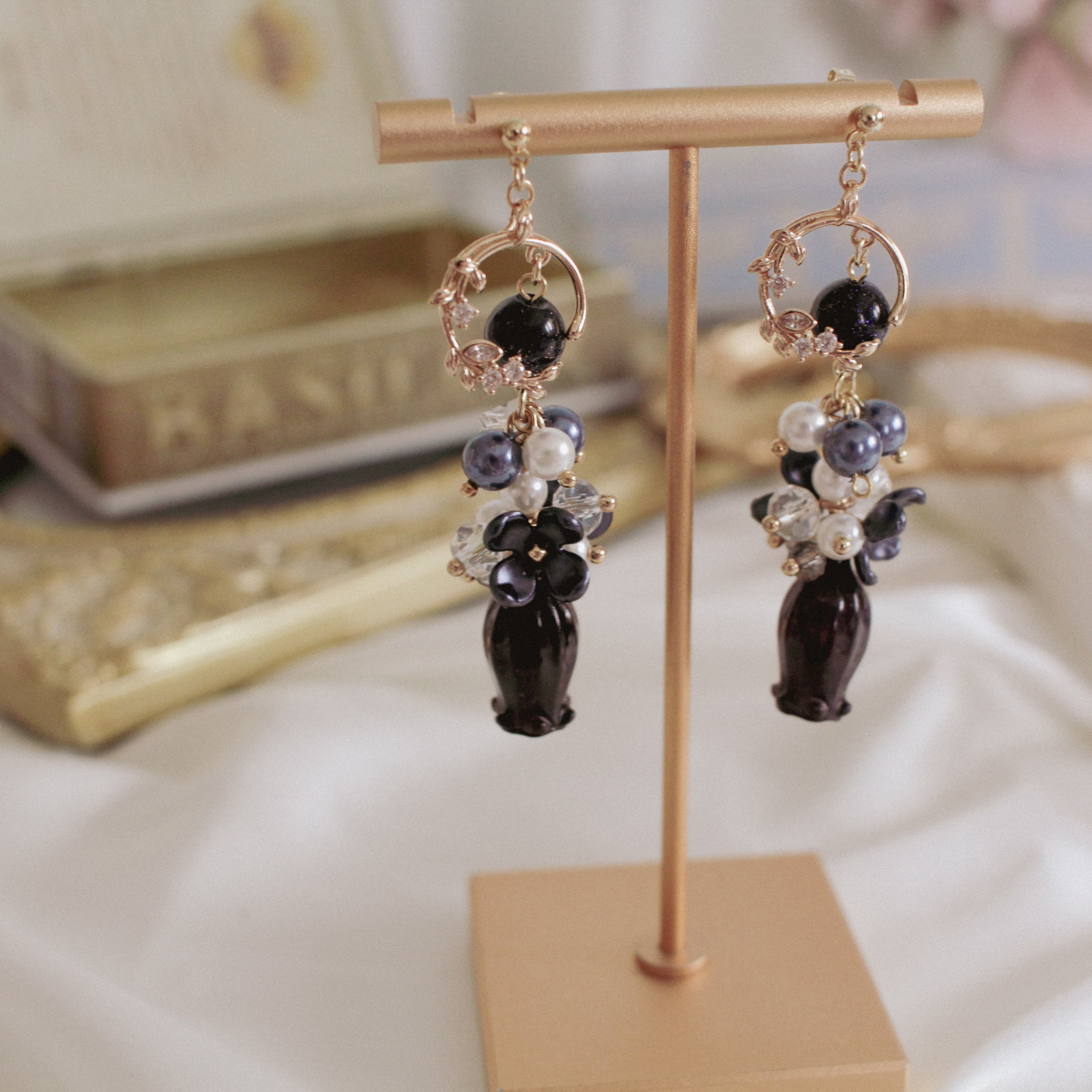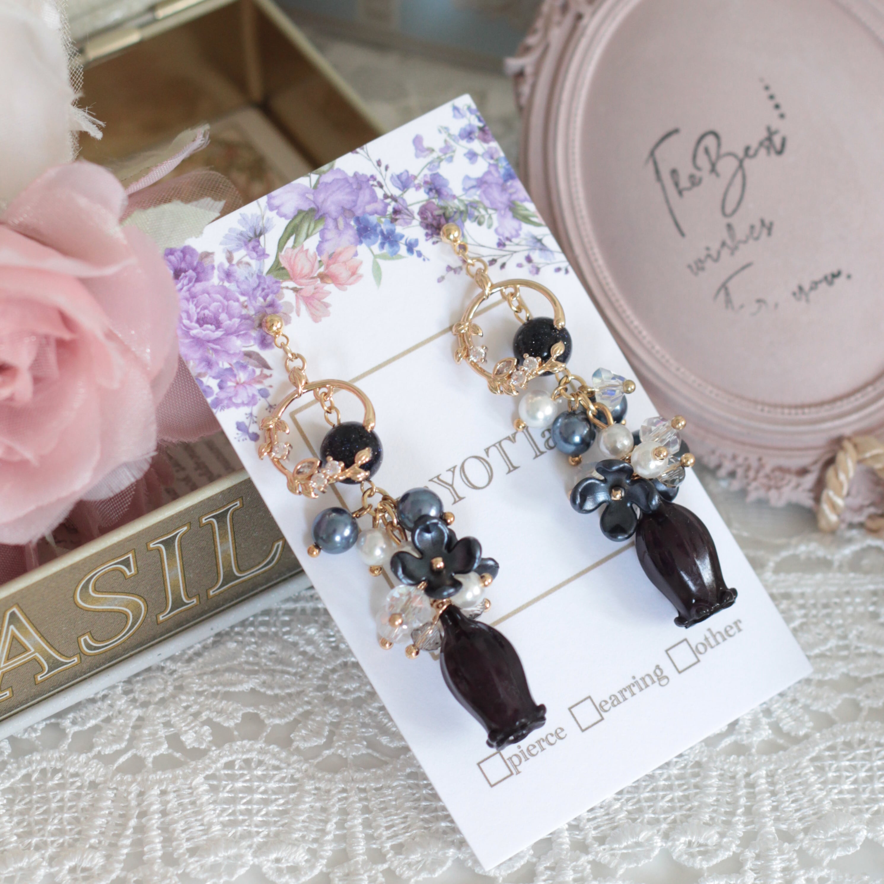 ※金具は強力接着剤で24時間固定したあと最終コーティングにレジンを使用しております。