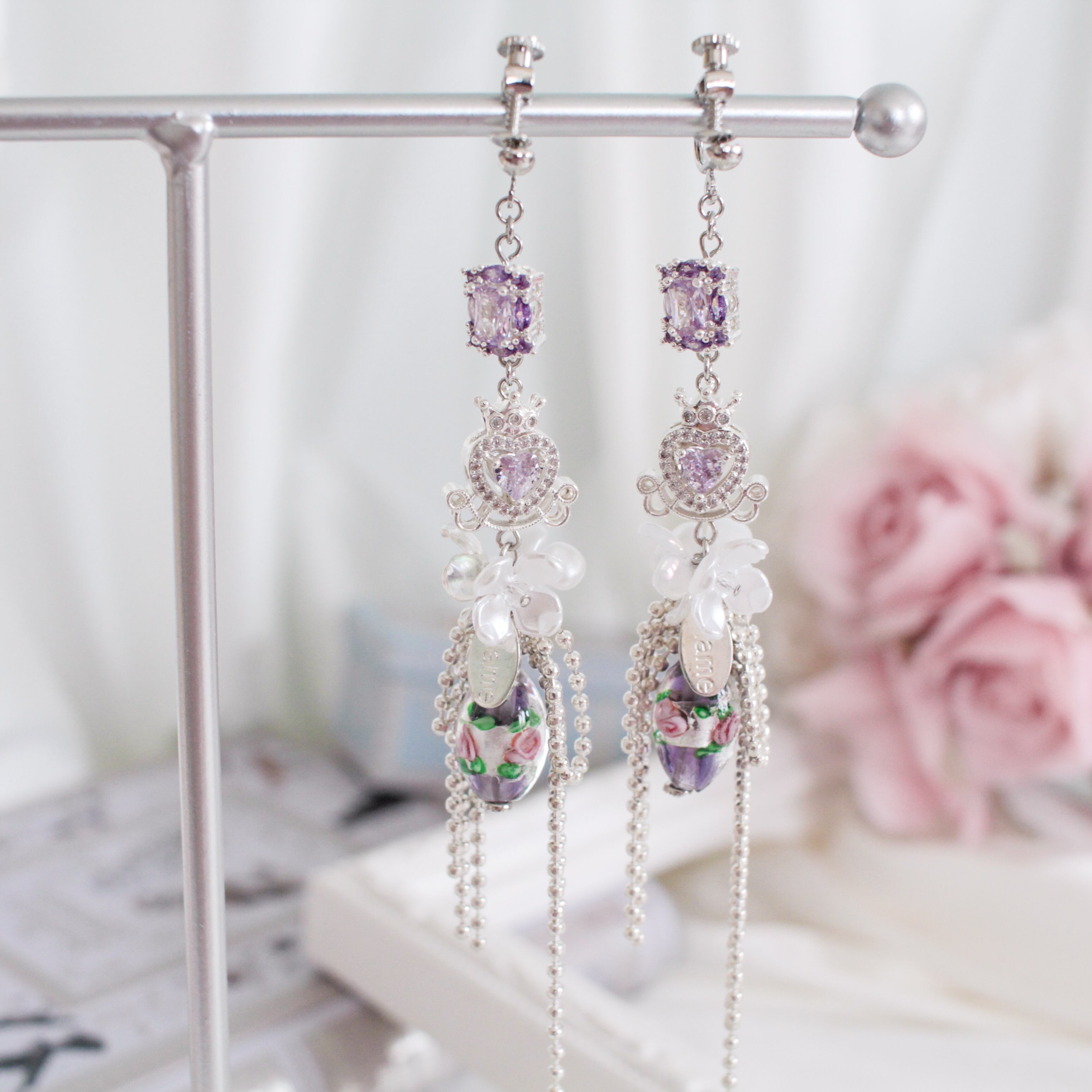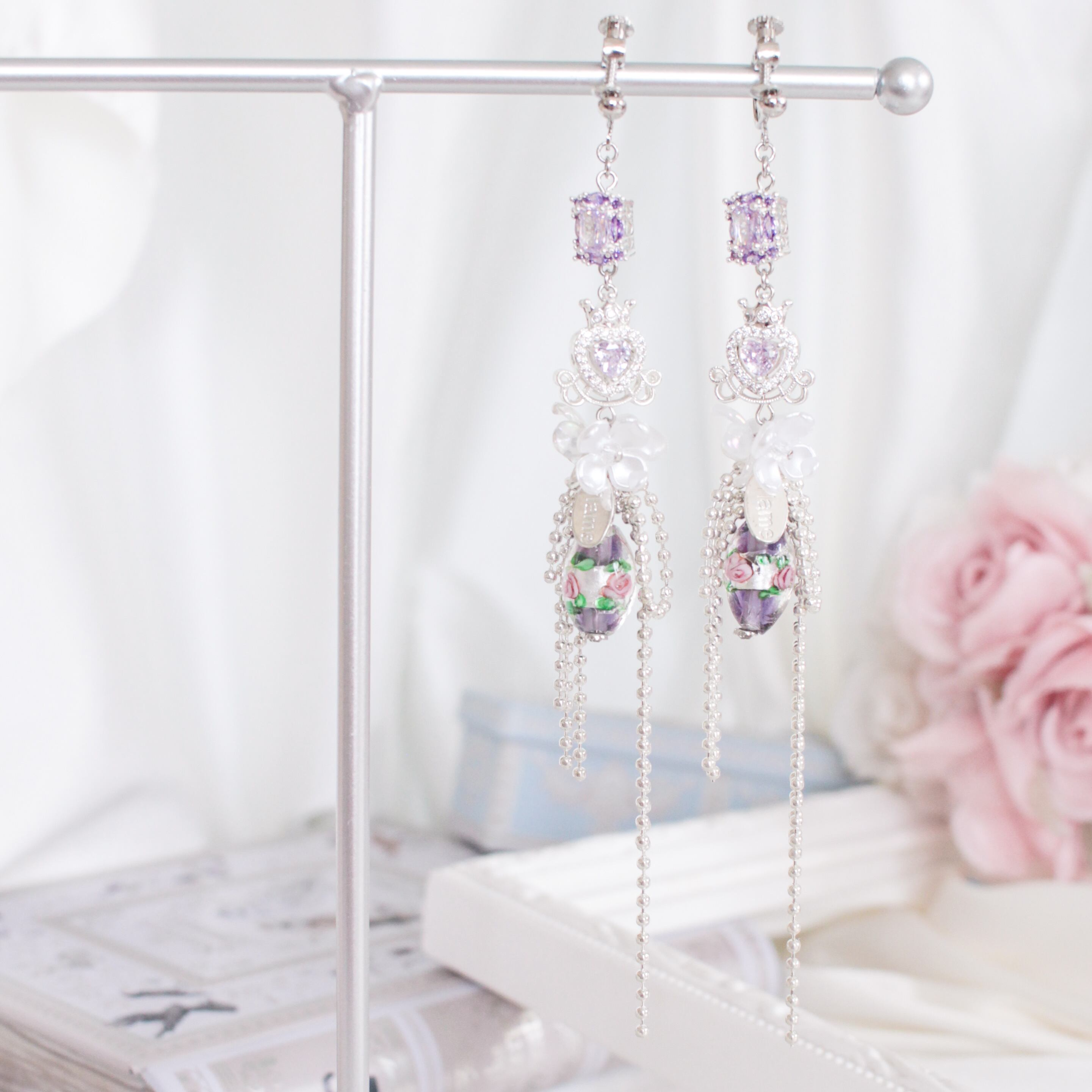 美しいの一言でうっとりとするデザインの耳飾りです。