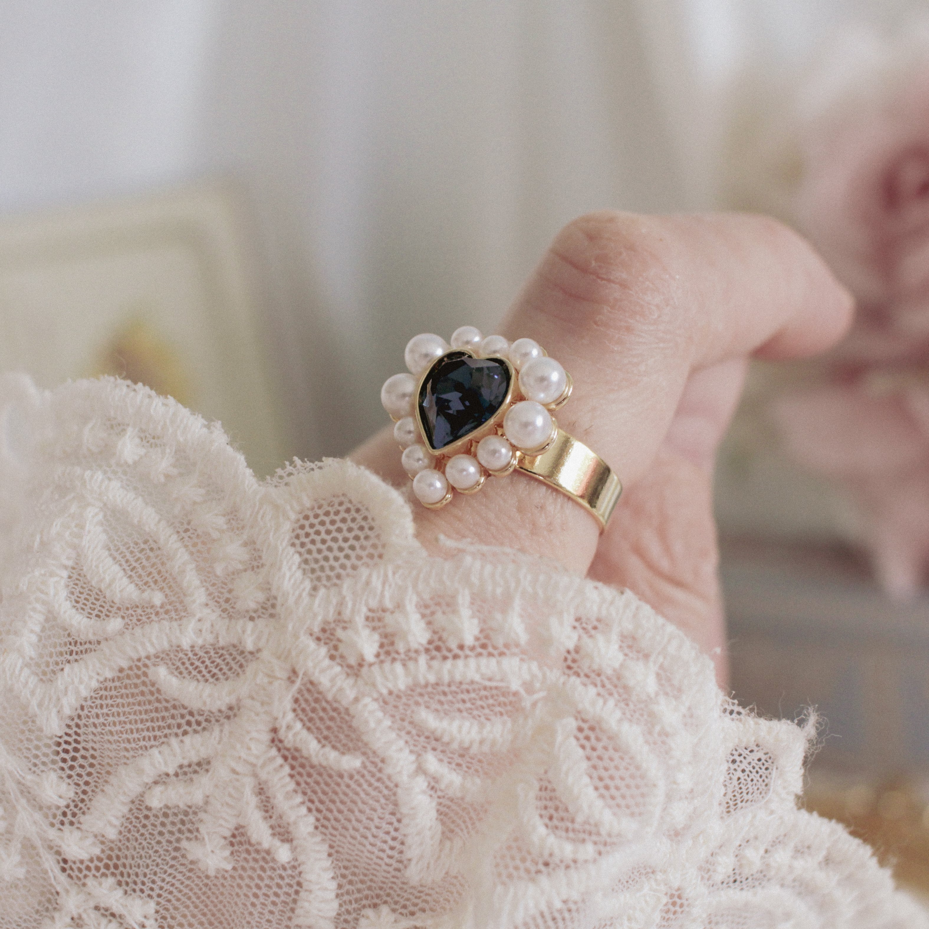 華奢なリングとの組み合わせでもつけられます。