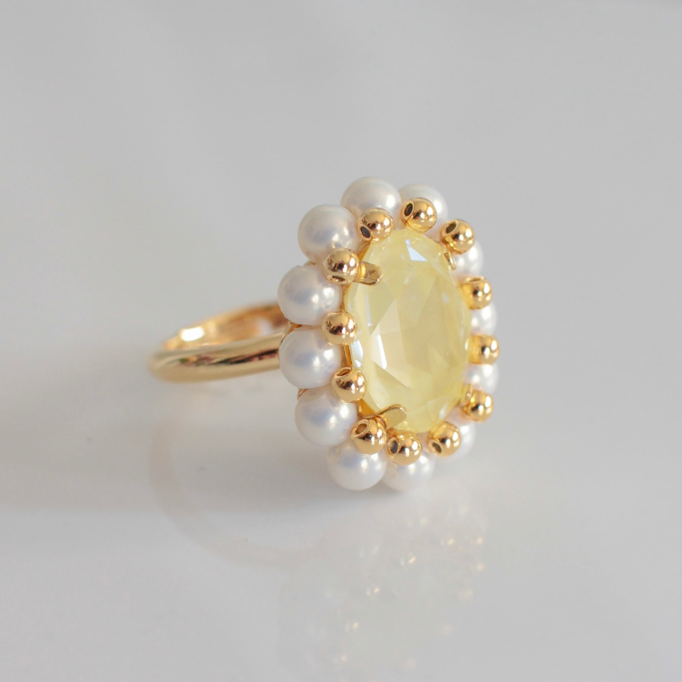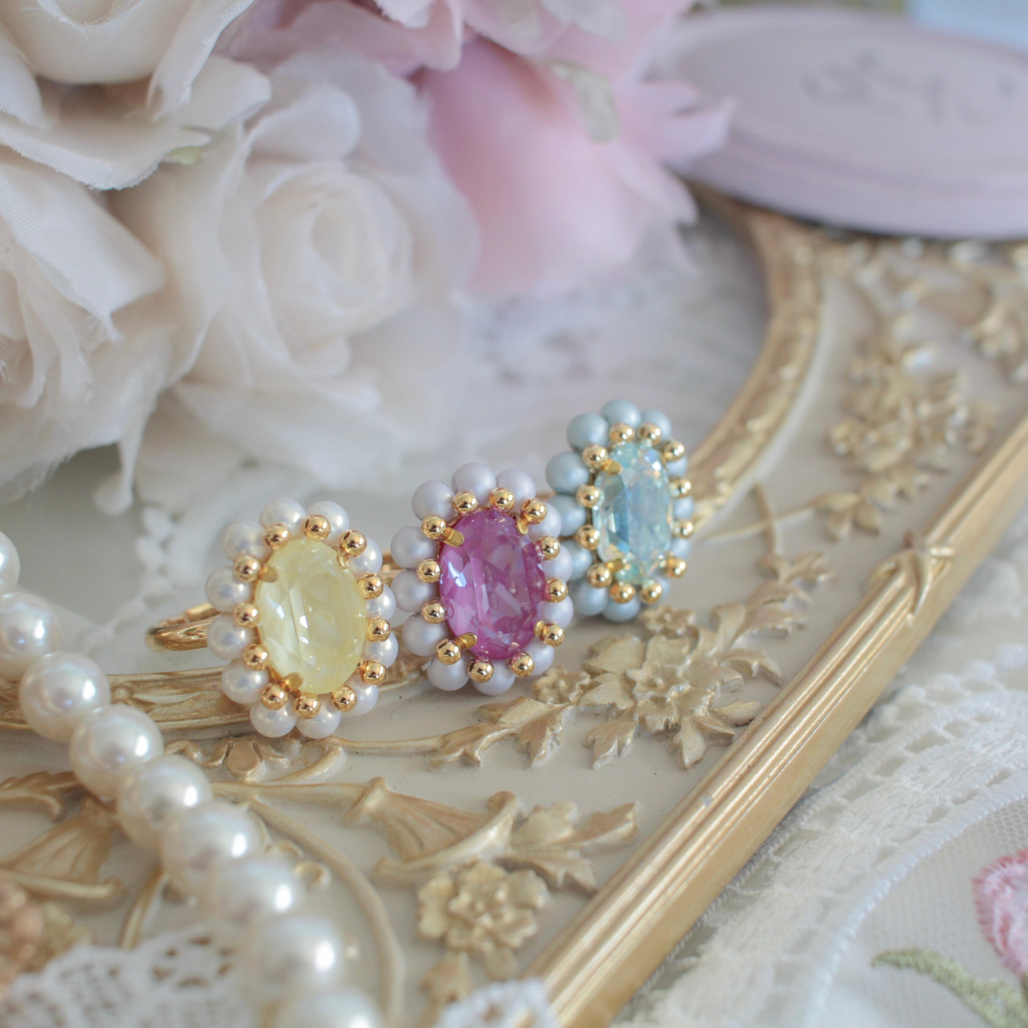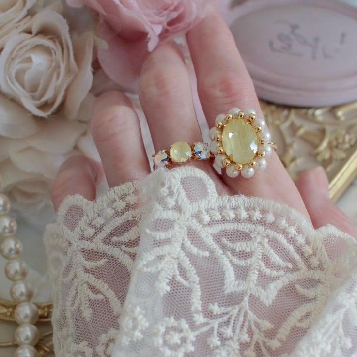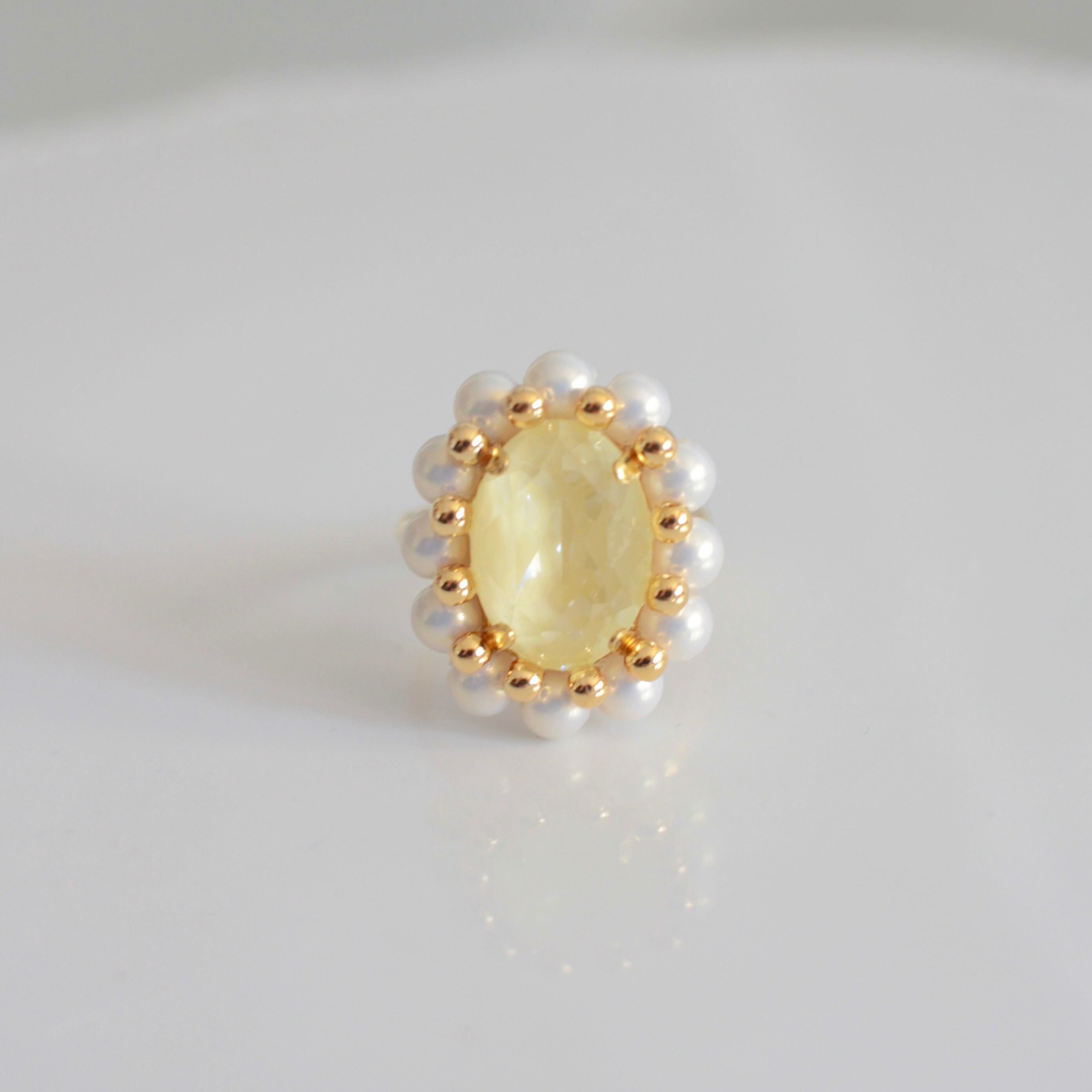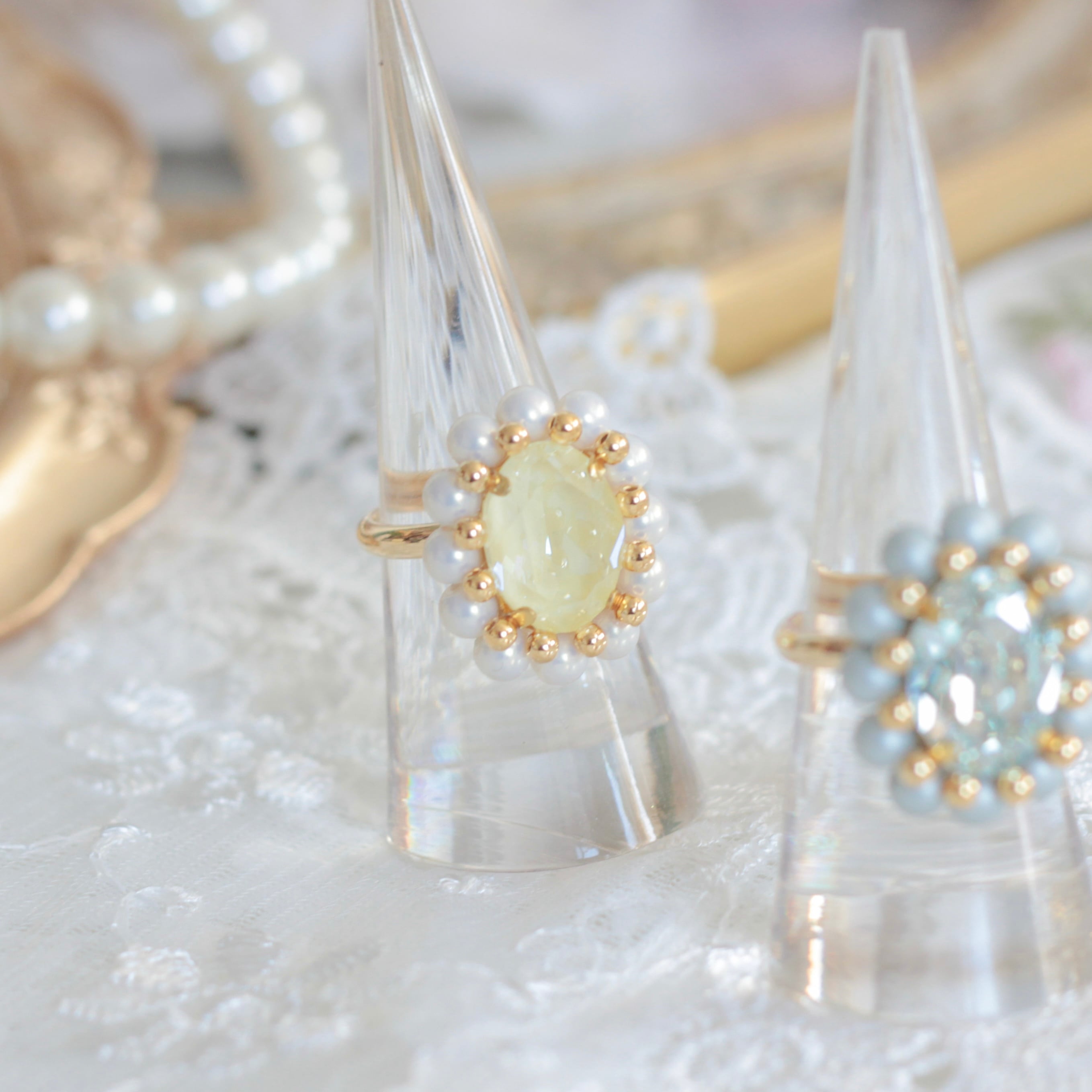 優しく甘いイエローのキワクリスタルと軽くてツヤっとした樹脂パールは