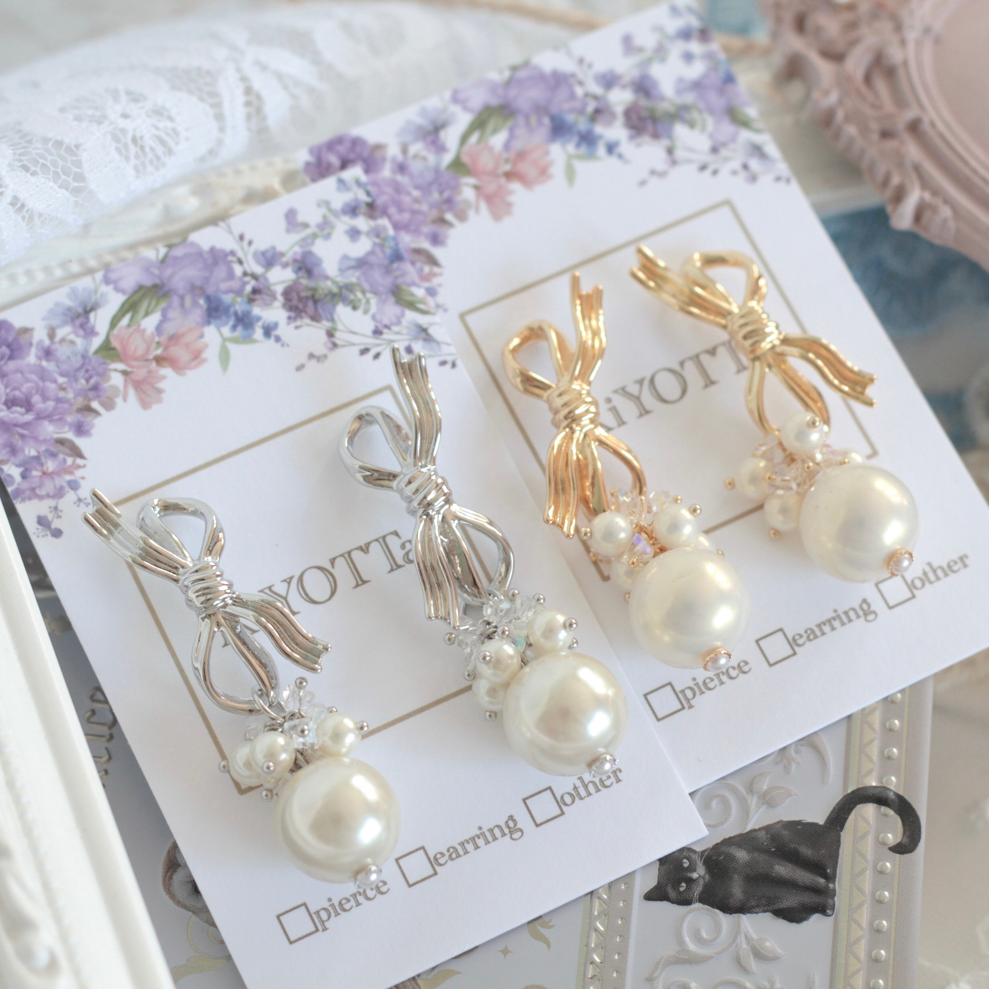 ※こちらのリボンはピアスがついてる形のリボンパーツです。