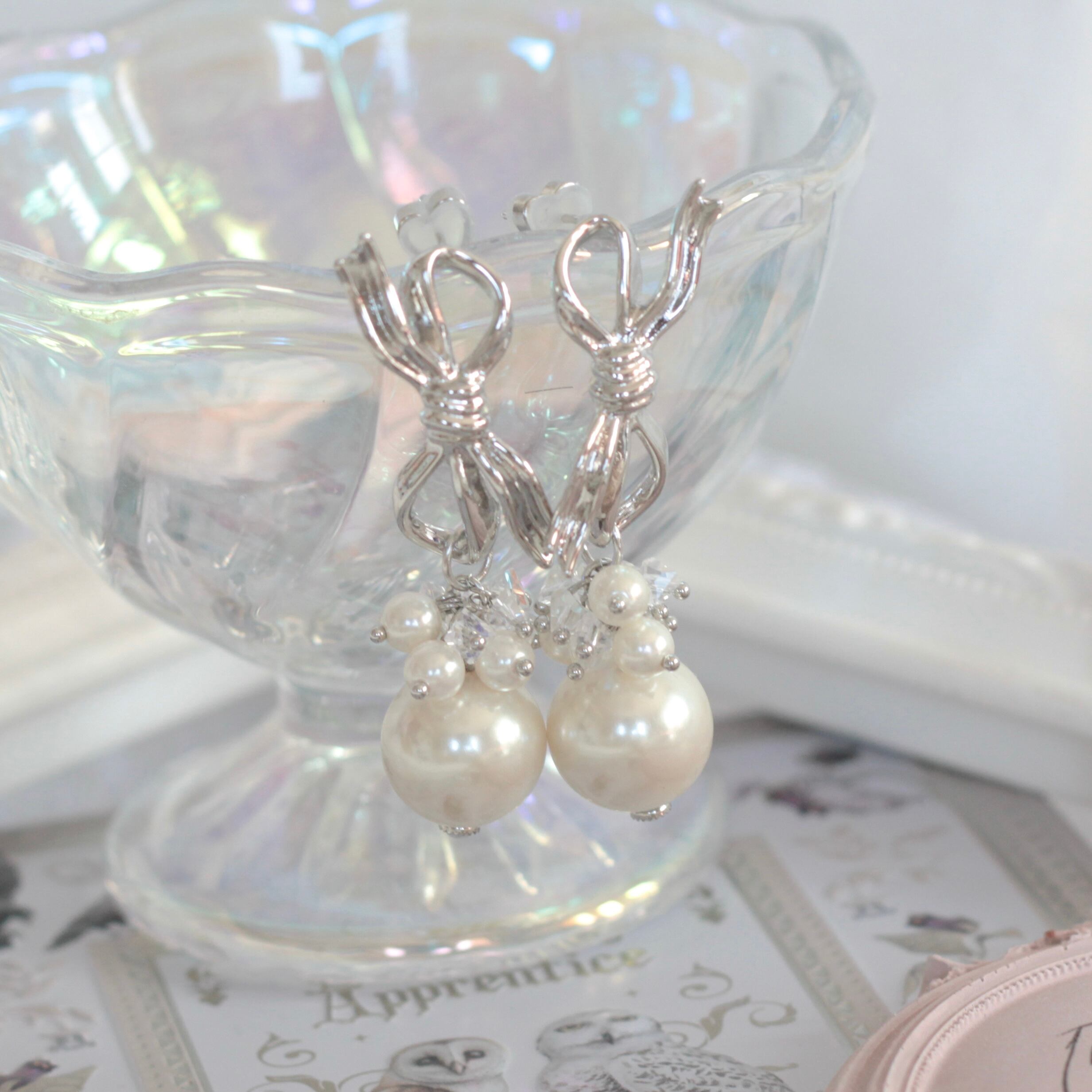 リボンパールちゃん シルバー ピアス(ピアス以外の金具も可能です。商品詳細をお読みください)