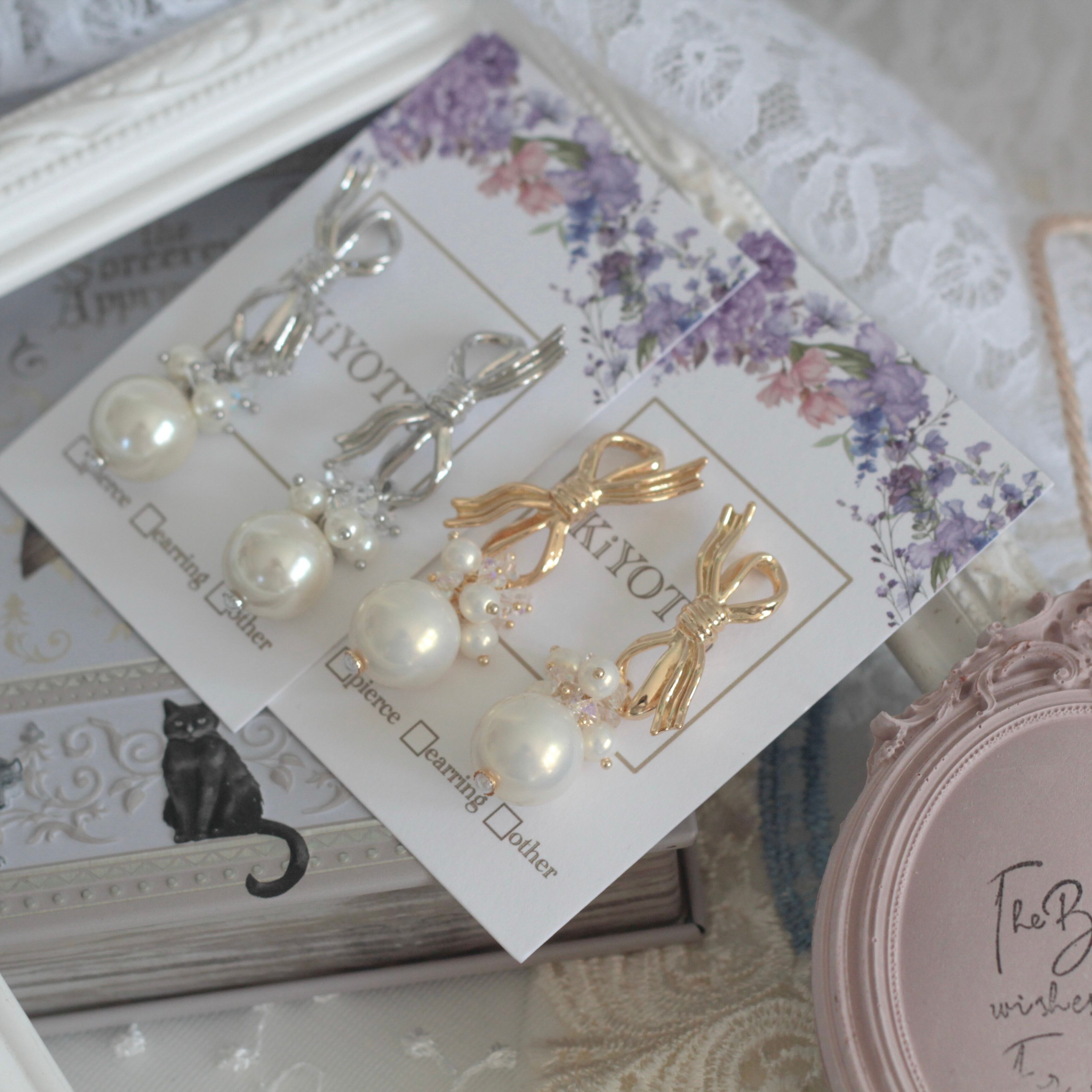 ※こちらのリボンはピアスがついてる形のリボンパーツです。