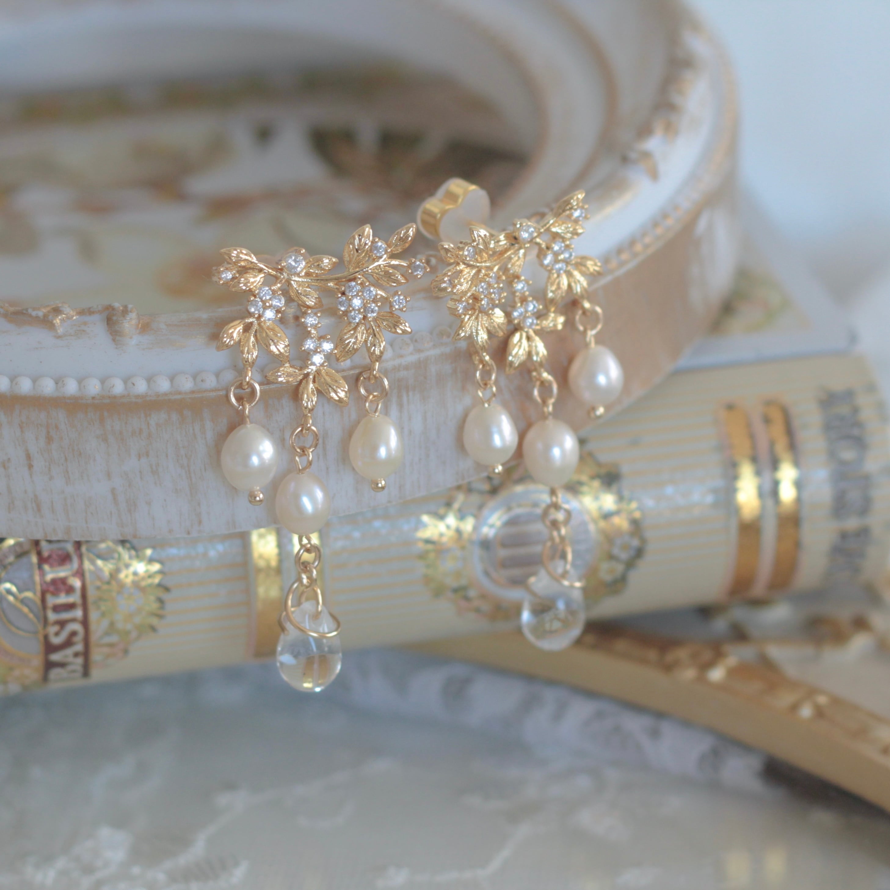 キュービックジルコニアが埋め込まれた美しく儚げなピアスパーツに