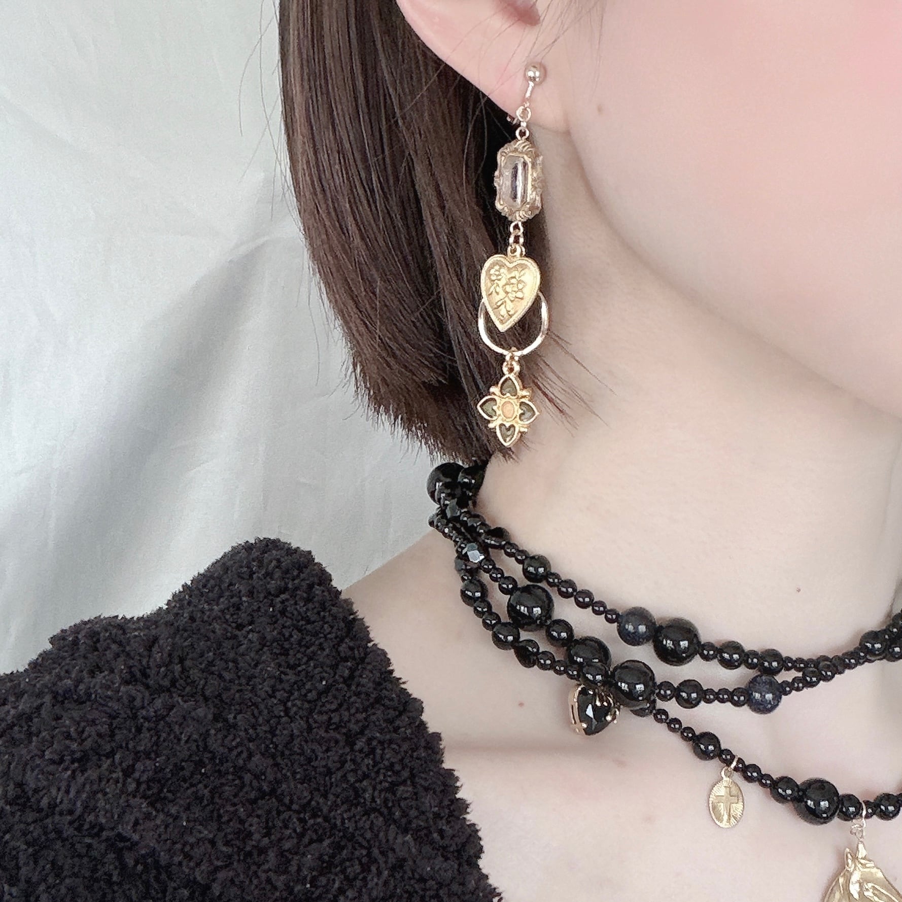 アシンメトリーで左右の付け替えでも楽しんでいただけます。