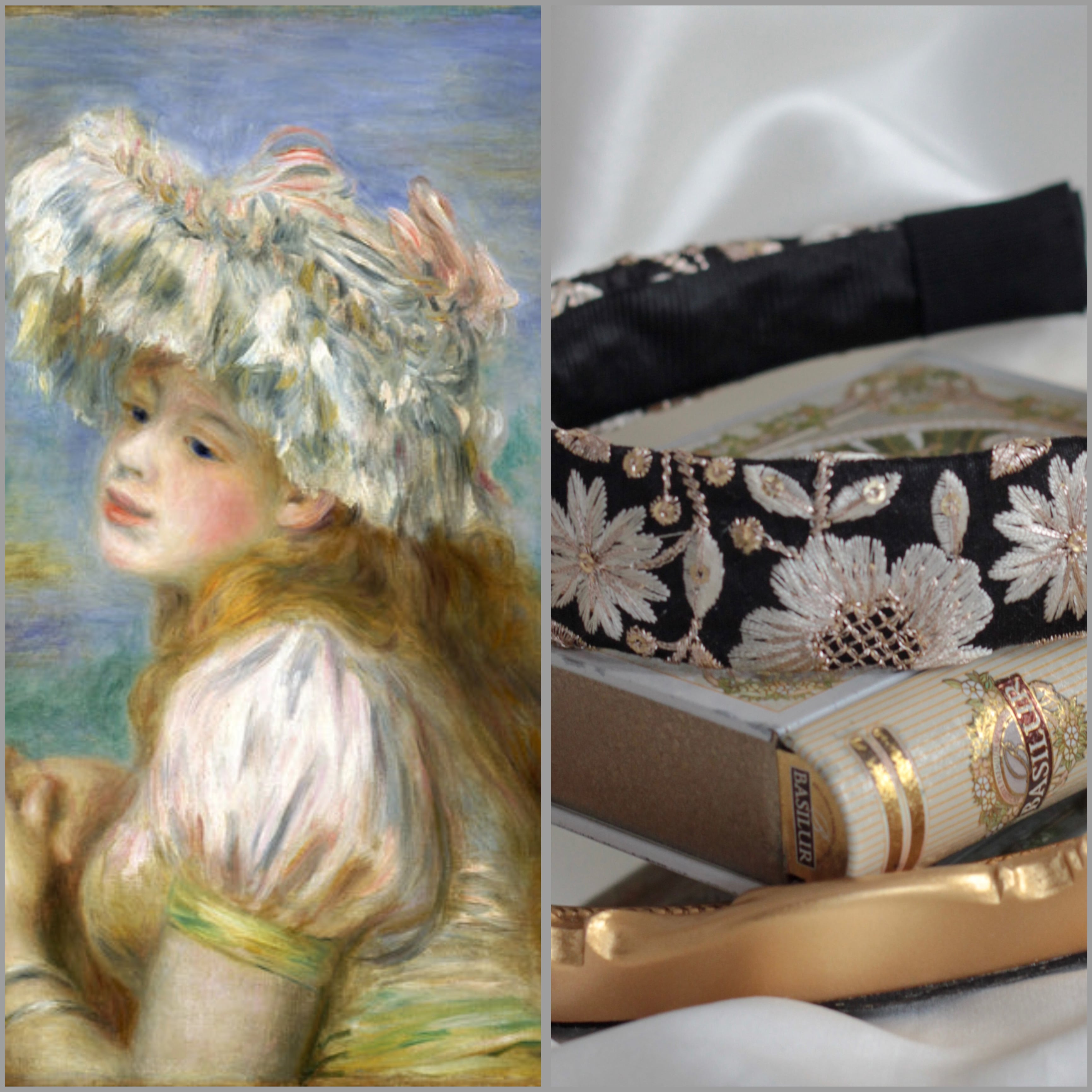 ルノワール『レースの帽子の少女』をイメージしたインド刺繍カチューシャです。