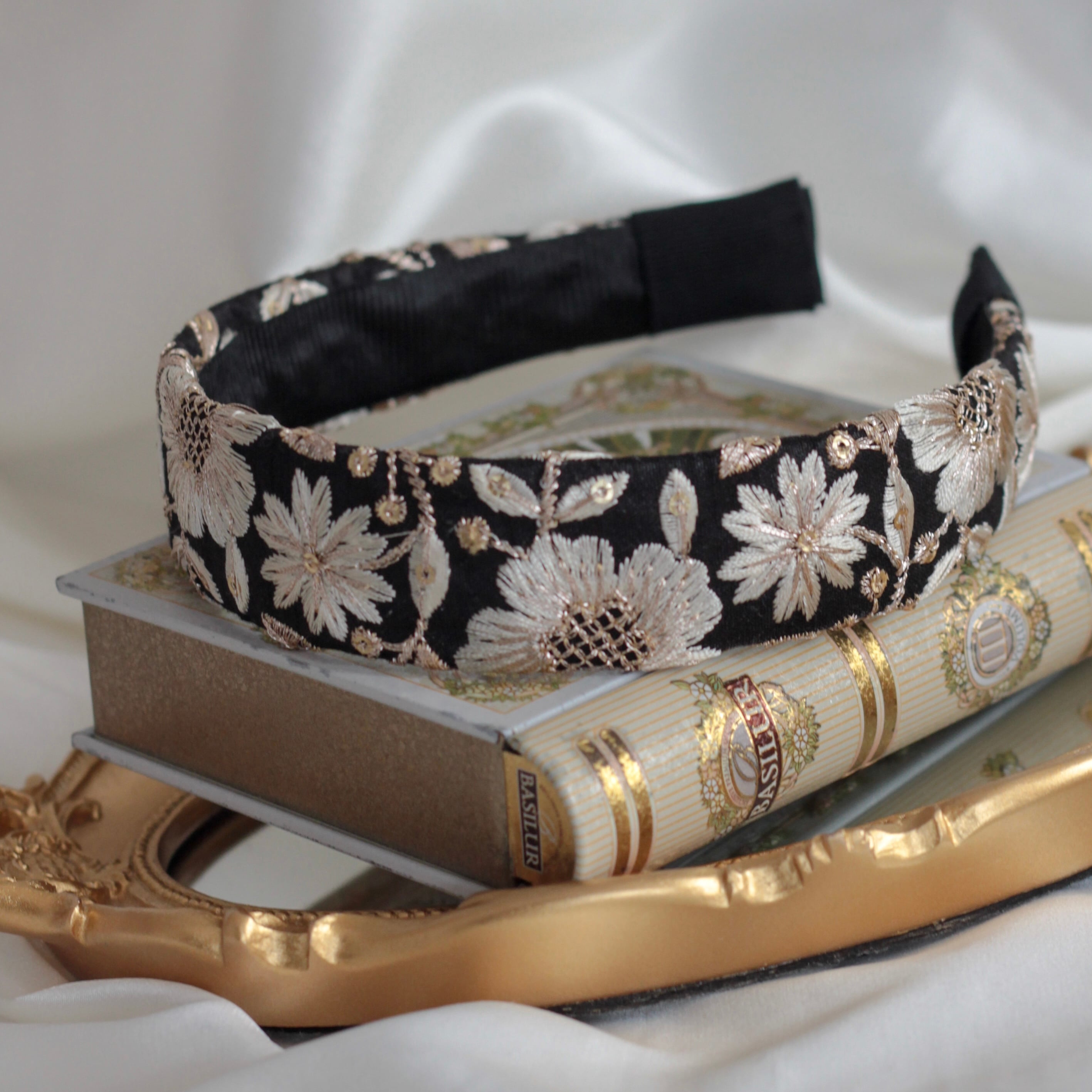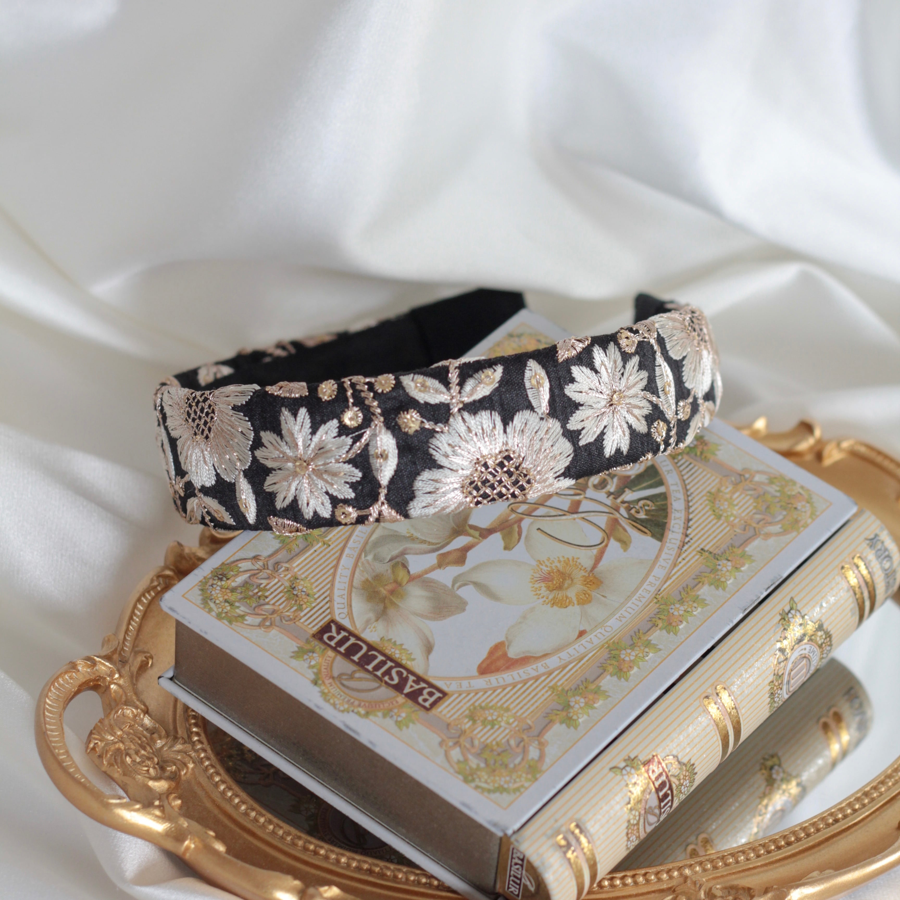 ※KiYOTTaのカチューシャは裏面のインド刺繍接着を接着剤ではなく手縫いで縫い合わせており、