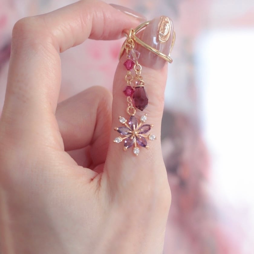 ダイヤ型のチェコビーズも可愛らしく、作品の雰囲気をより引き立ててます。